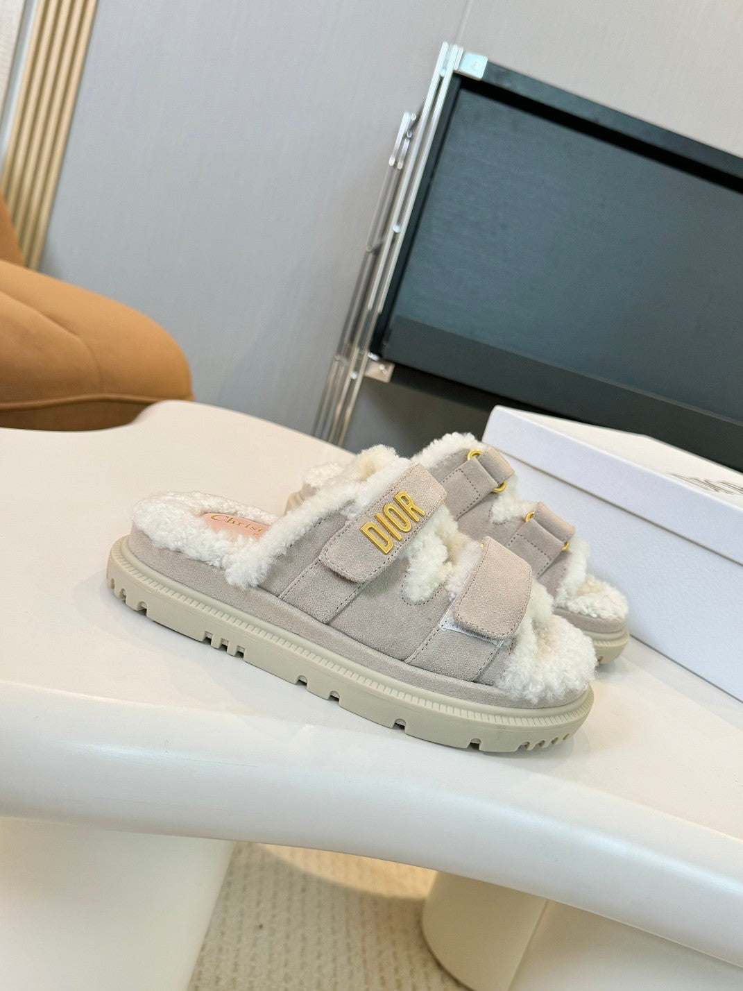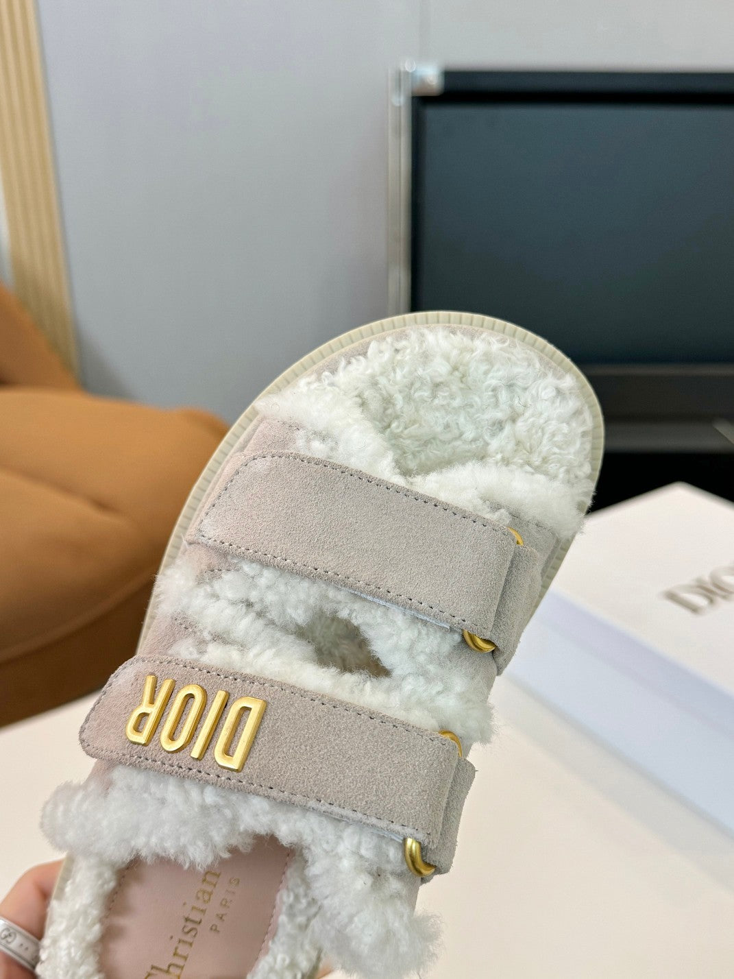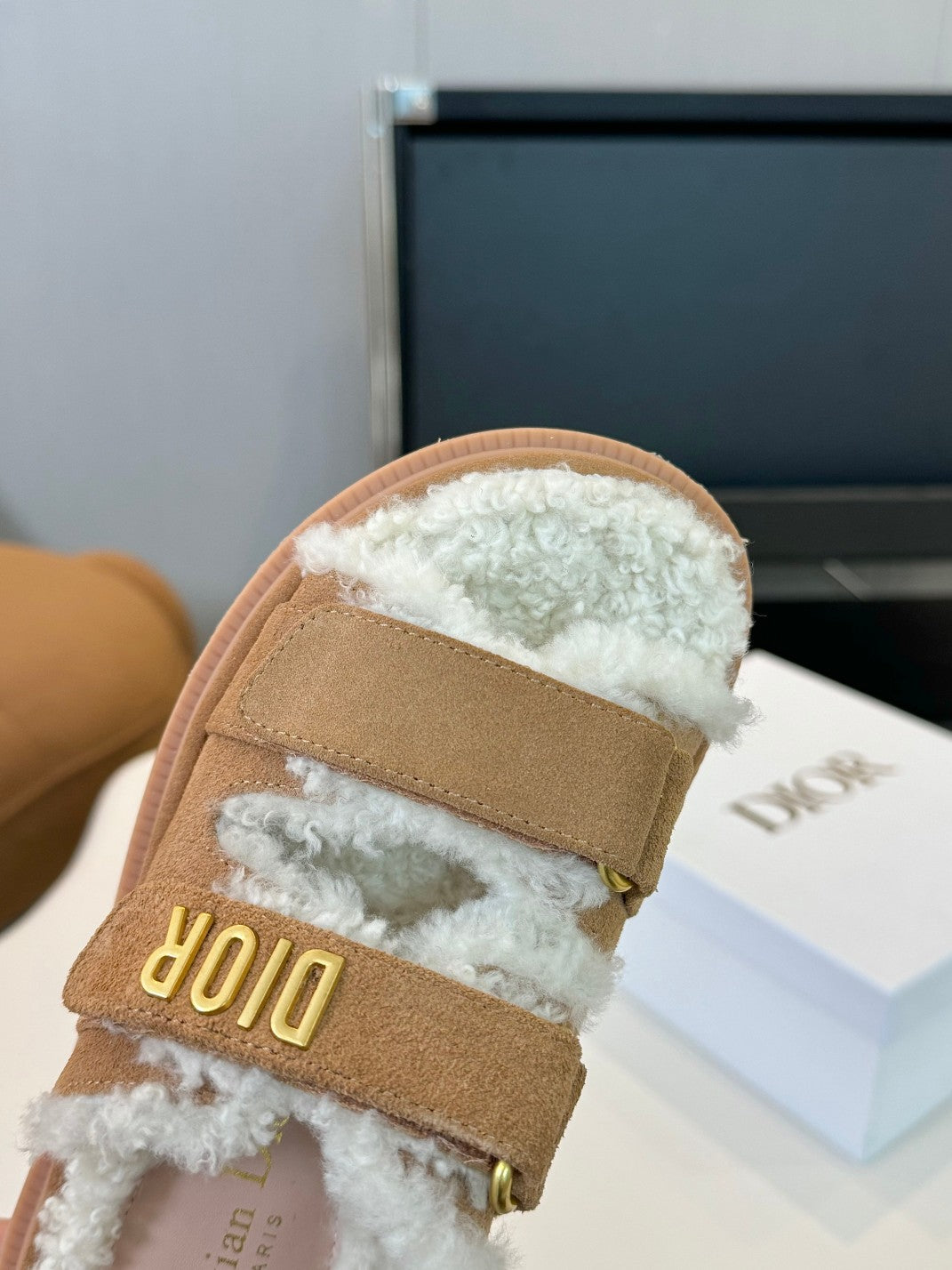 CD Dioract Sandal 40mm Brown Yellow Suede And Fleece Lining