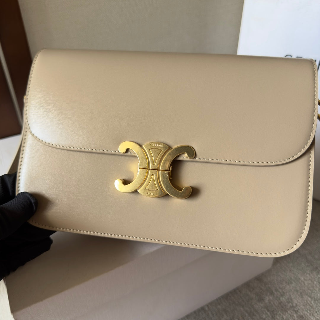 classic triomphe 20 light beige calfskin gold hardware