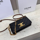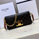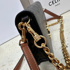 FLAP WITH DECORATIVE TRIOMPHE AND SNAP BUTTON CLOSURE