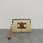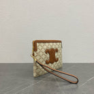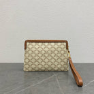 small pouch with strap 24cm beige textile tan calfskin