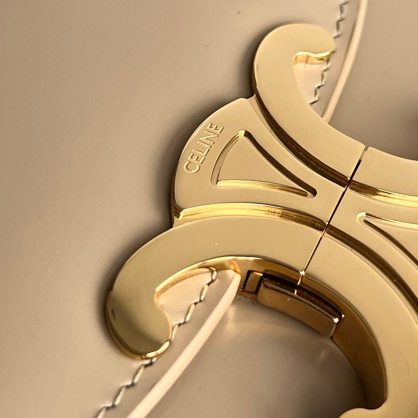 TRIOMPHE SHINY CALFSKIN HANDBAG 18 CREAM GREY