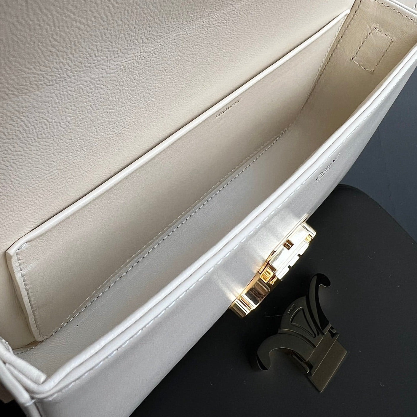 TRIOMPHE SHINY CALFSKIN HANDBAG 18 CREAM GREY