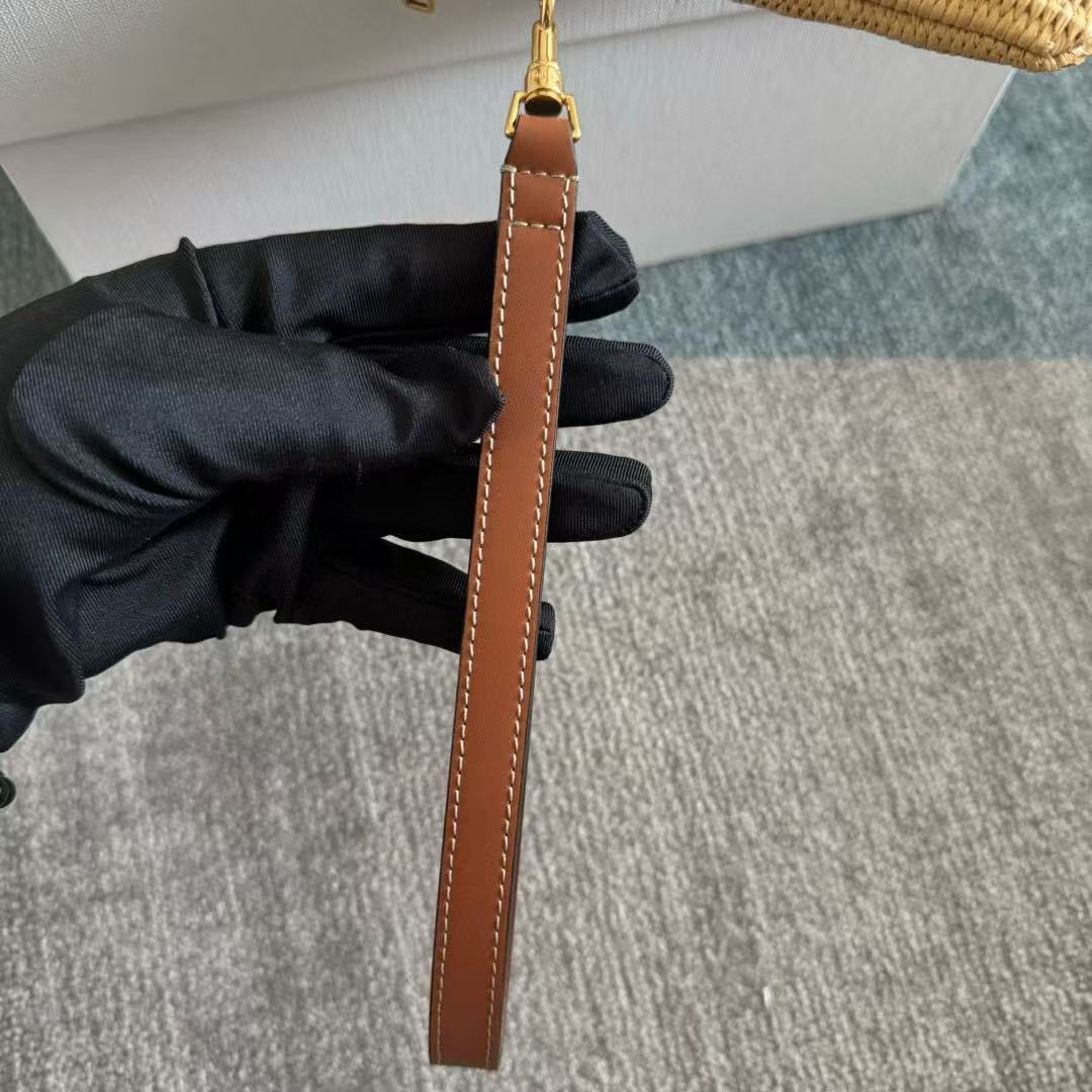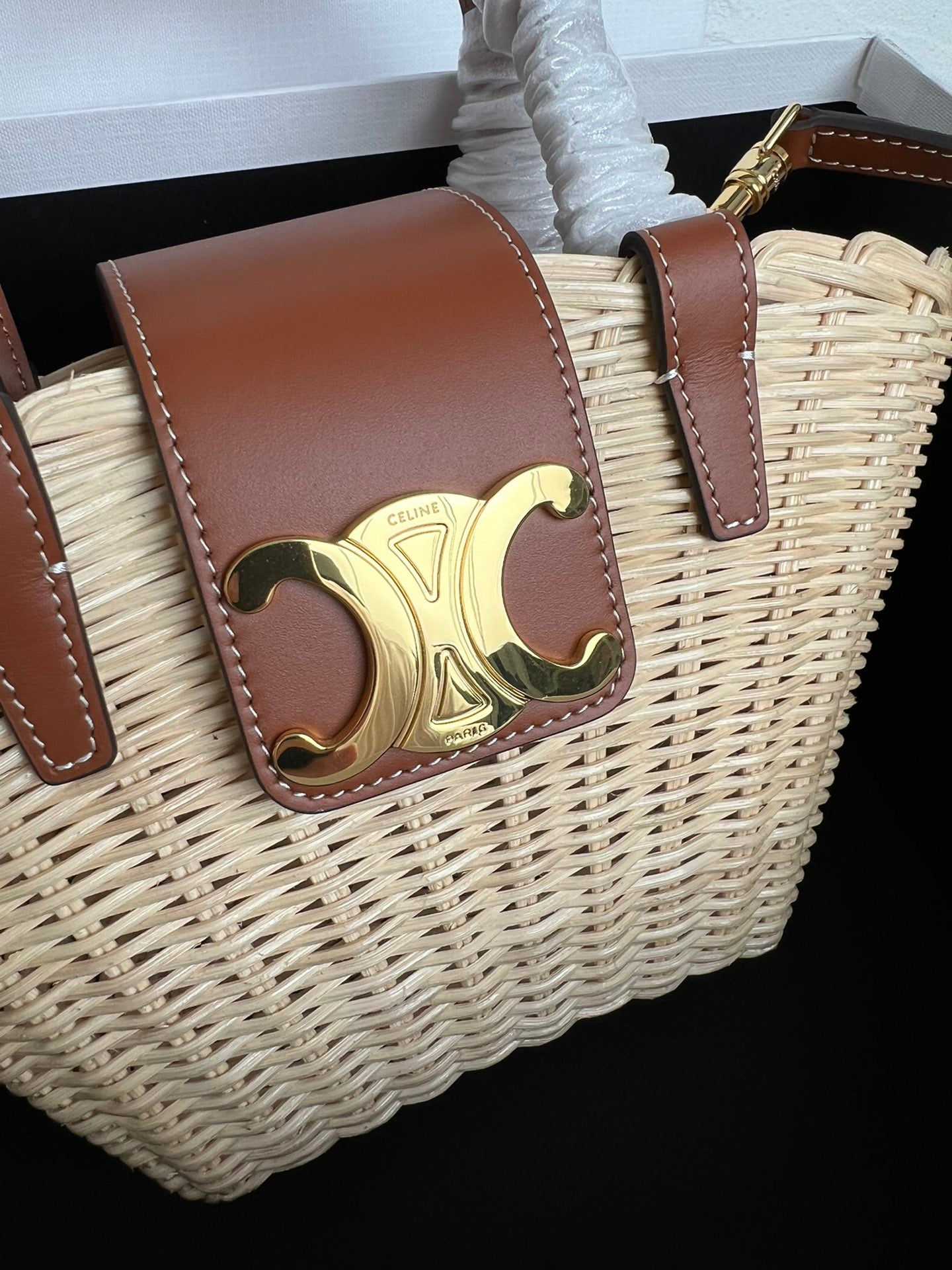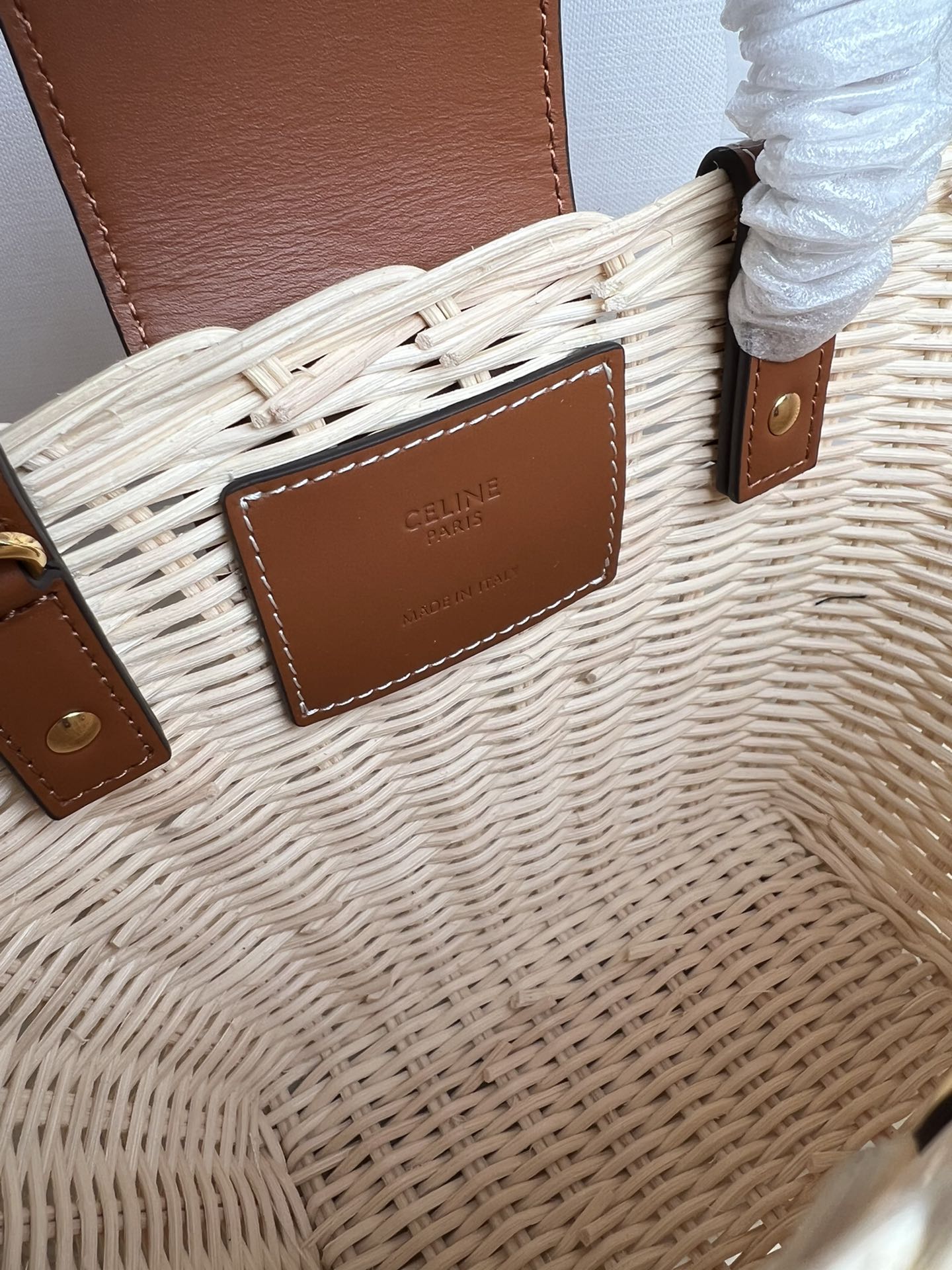Celine Classic Panier 36cm Braieded Triomphe Beige Raffia Brown Calfskin