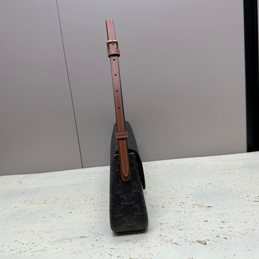 Celine Ava Bag 23cm Triomphe Canvas Brown Calfskin