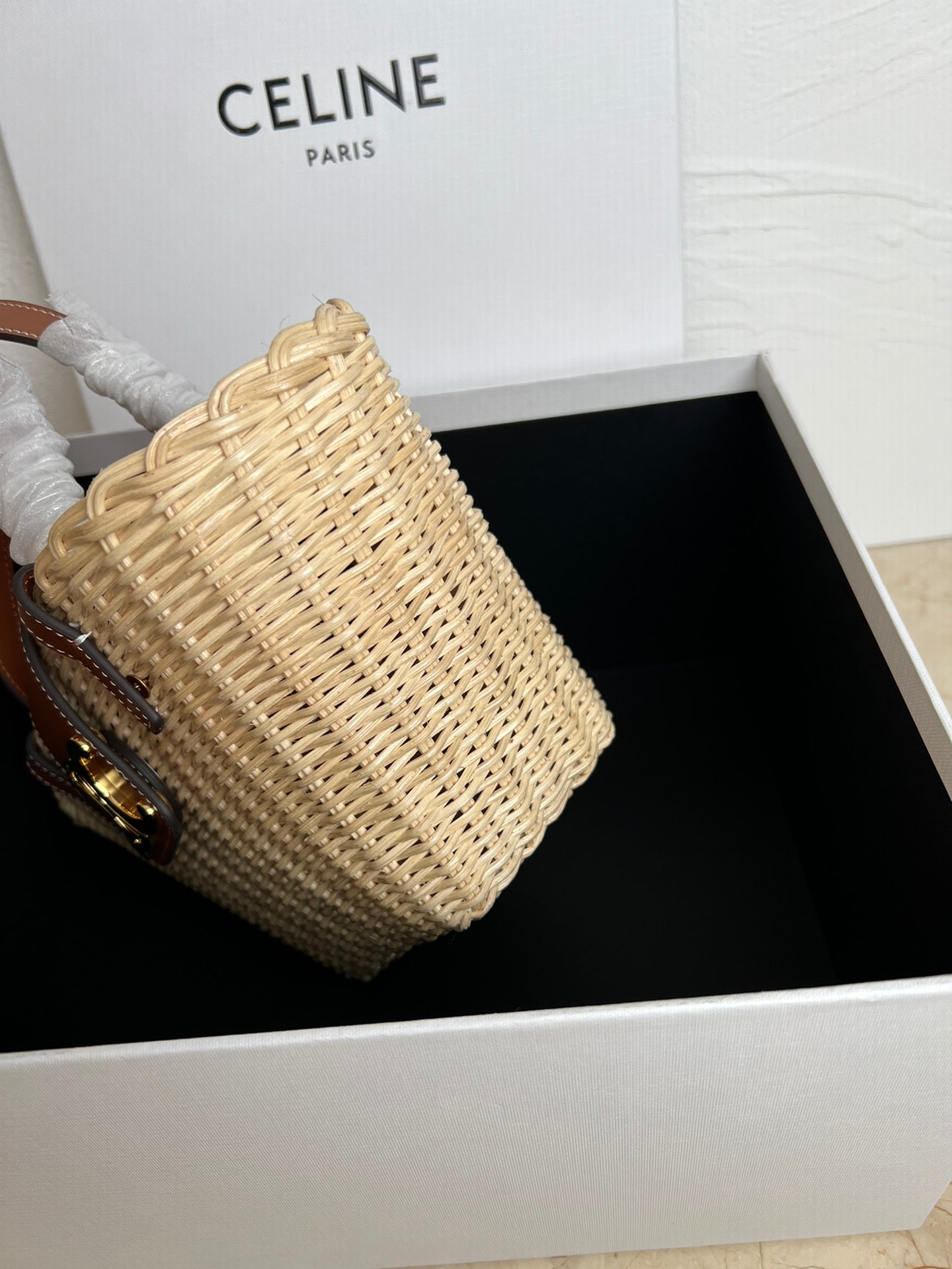 Celine Teen Supple Classic Panier 22cm Brown Calfskin Beige Raffia