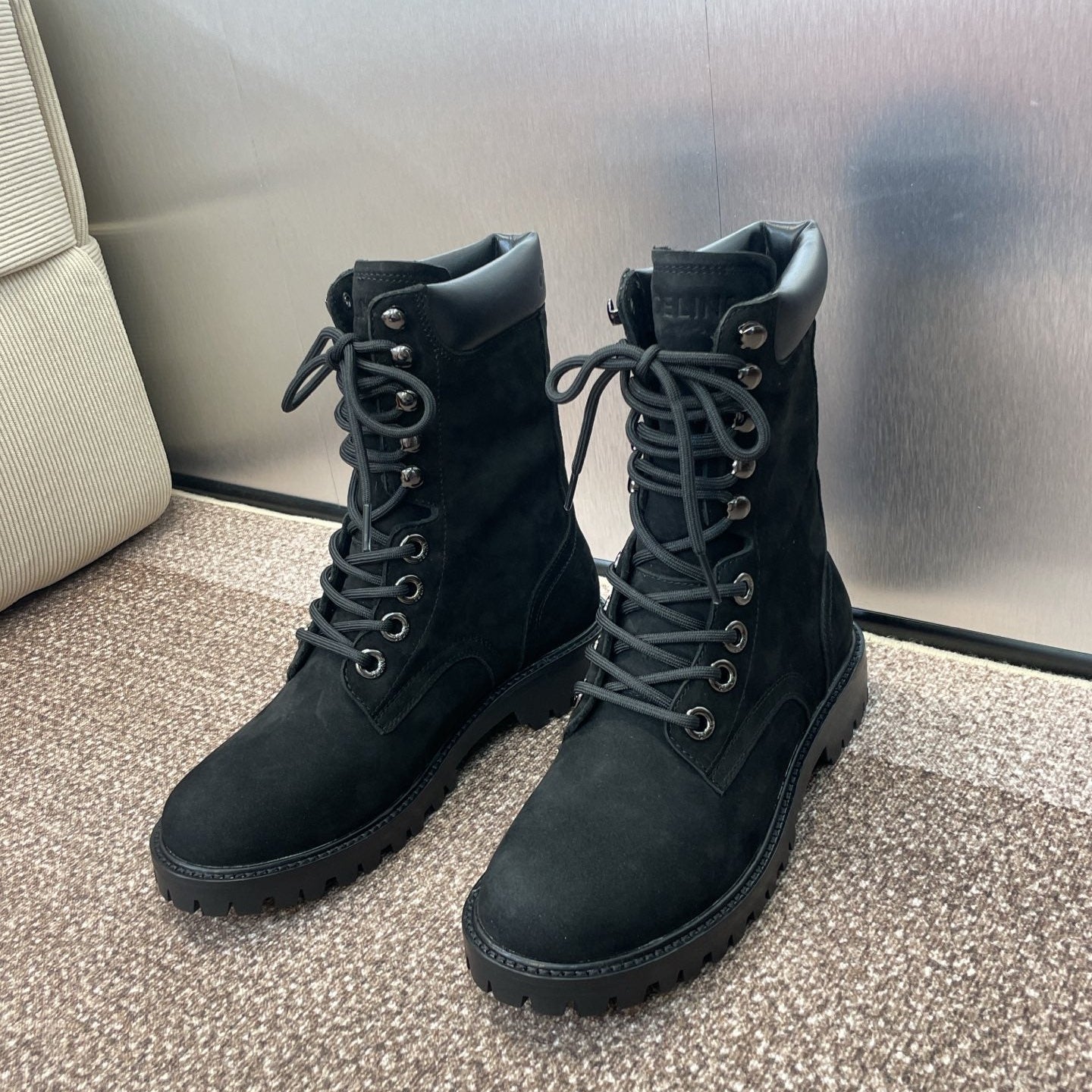 CELINE Ankle Boots Black Suede Lambswool 433387