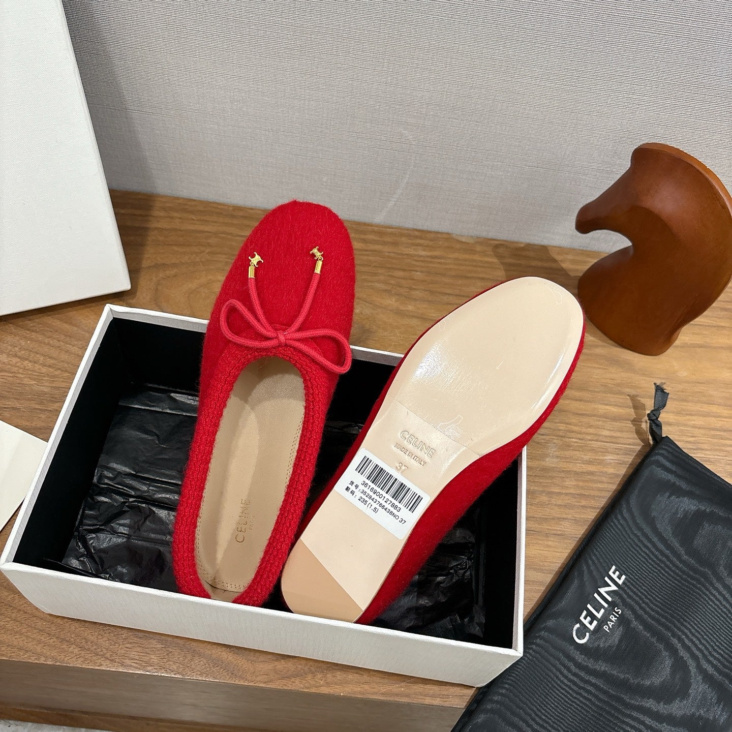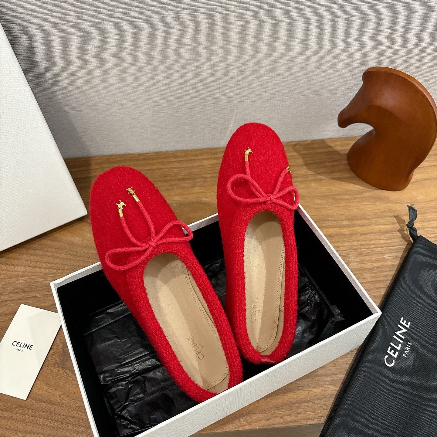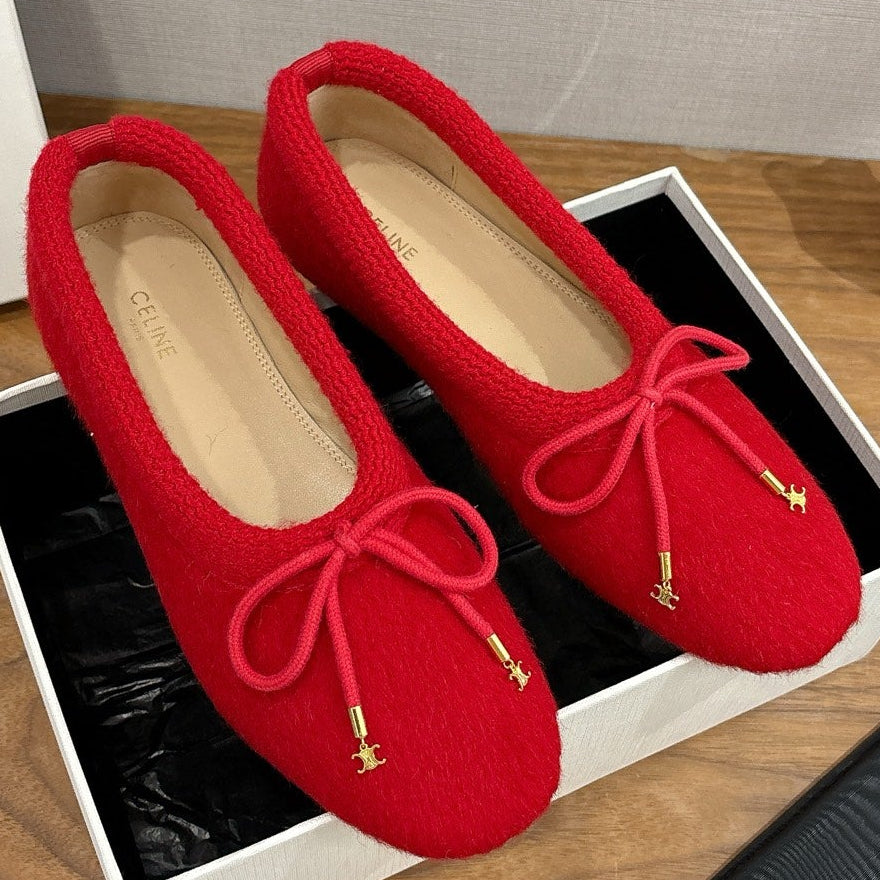 Celine 25 Ballet Flat Red Blend Knitted Wool 541481