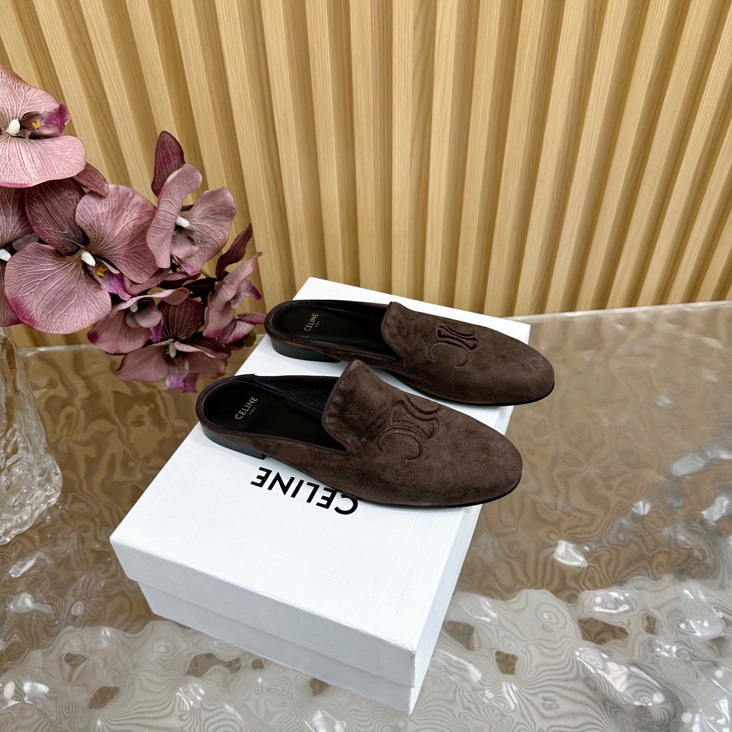 CELINE 25 Slippers Brown Velvet 285913