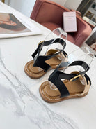 Celine 25C Lympia Sandal Beige mix Black Fabric with Calfskin 238163