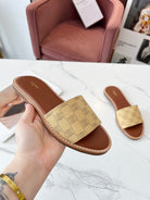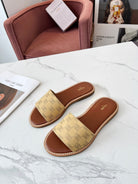 Celine 25C Slippers Egg Nog Monagram Silk with Calfskin 238148