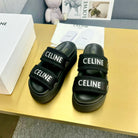 Celine Flatform Dad Sandal Mule Black Fabric with Rubber 238142
