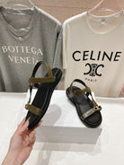CELINE MAUD SANDAL WITH TRIOMPHE ARMY GREEN COWHIDE 236757