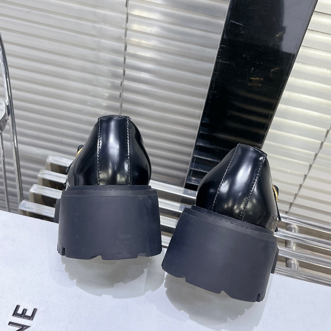 HIGH FLAT SANDALS WITH DOUBLE STRAP-DESIGN LEATHER BLACK