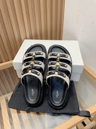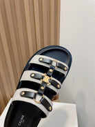 tippi slide sandal white black canvas calfskin