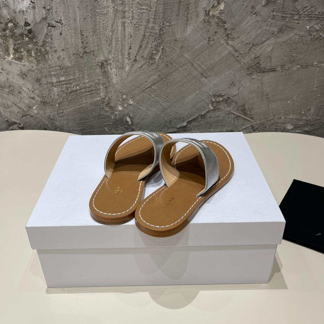 WOMEN TRIOMPHE FLAT THONG IN CALFSKIN SILVER