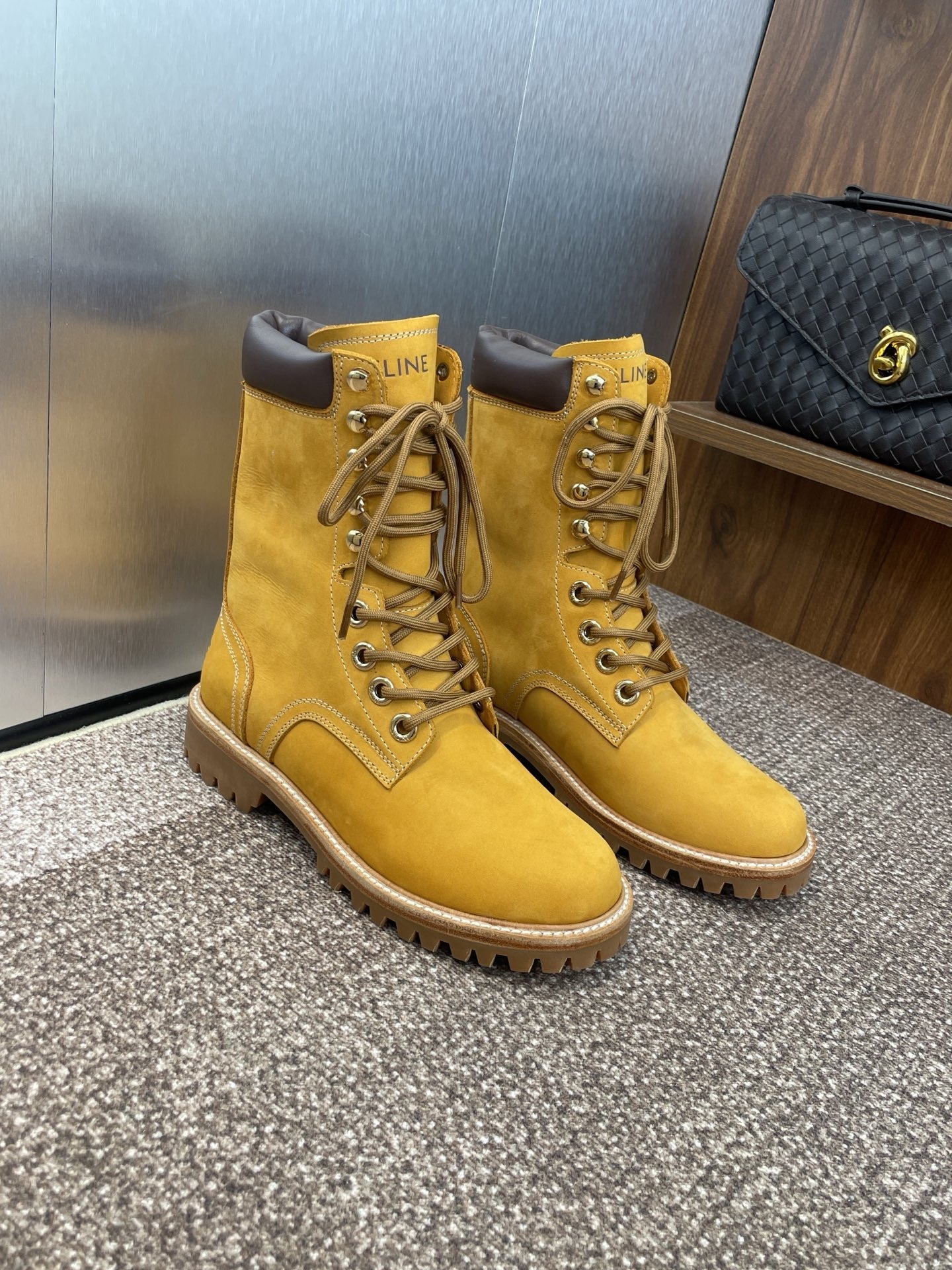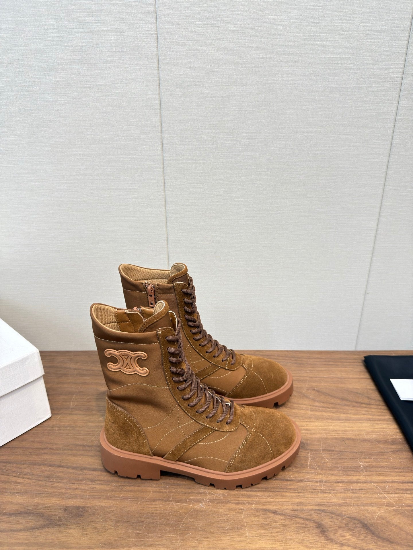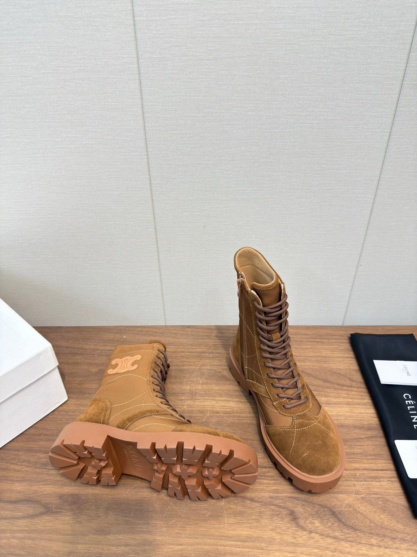 Celine 25 Bulky Lace-up Boot Tan Canvas Calfskin 554014