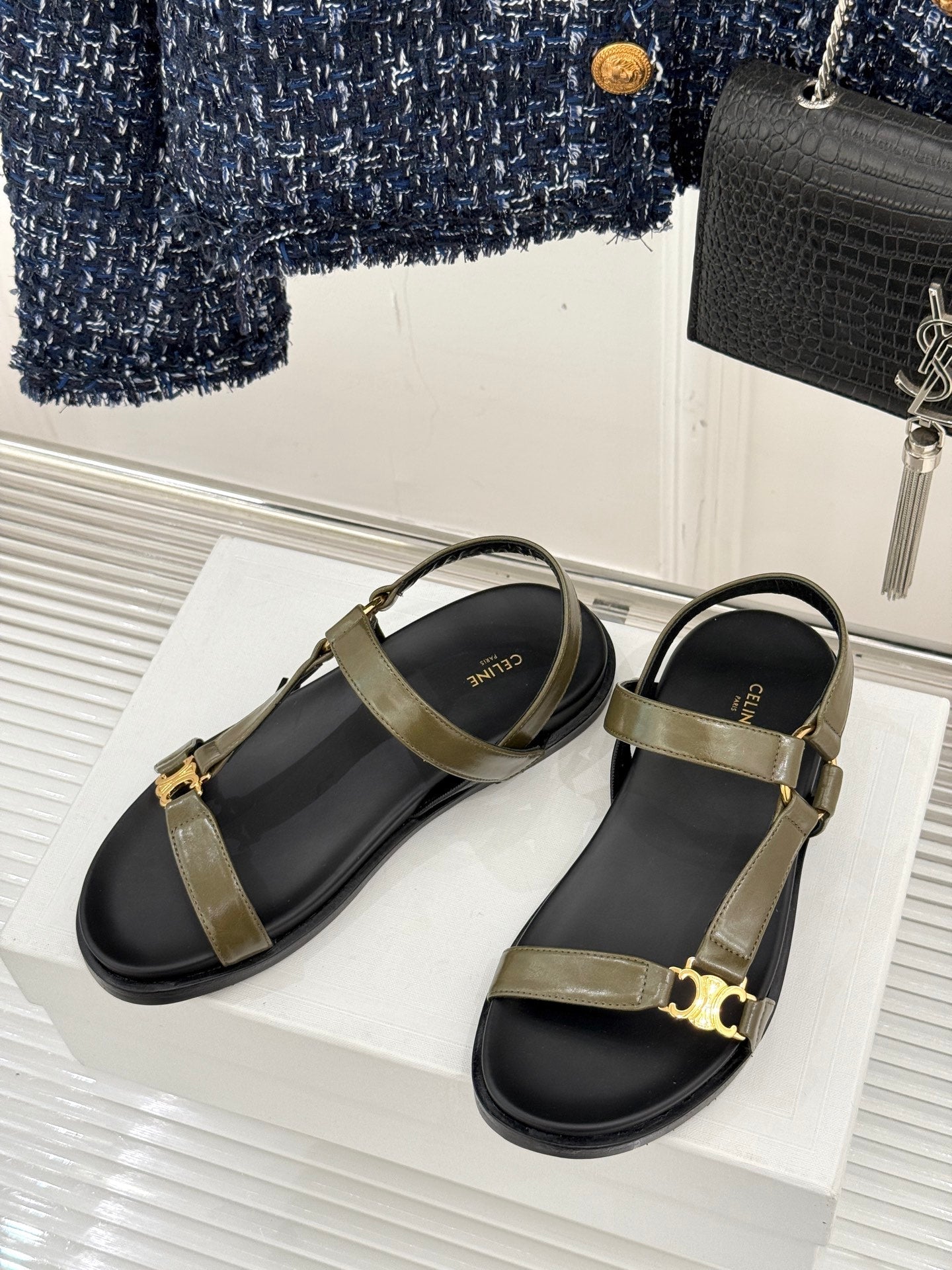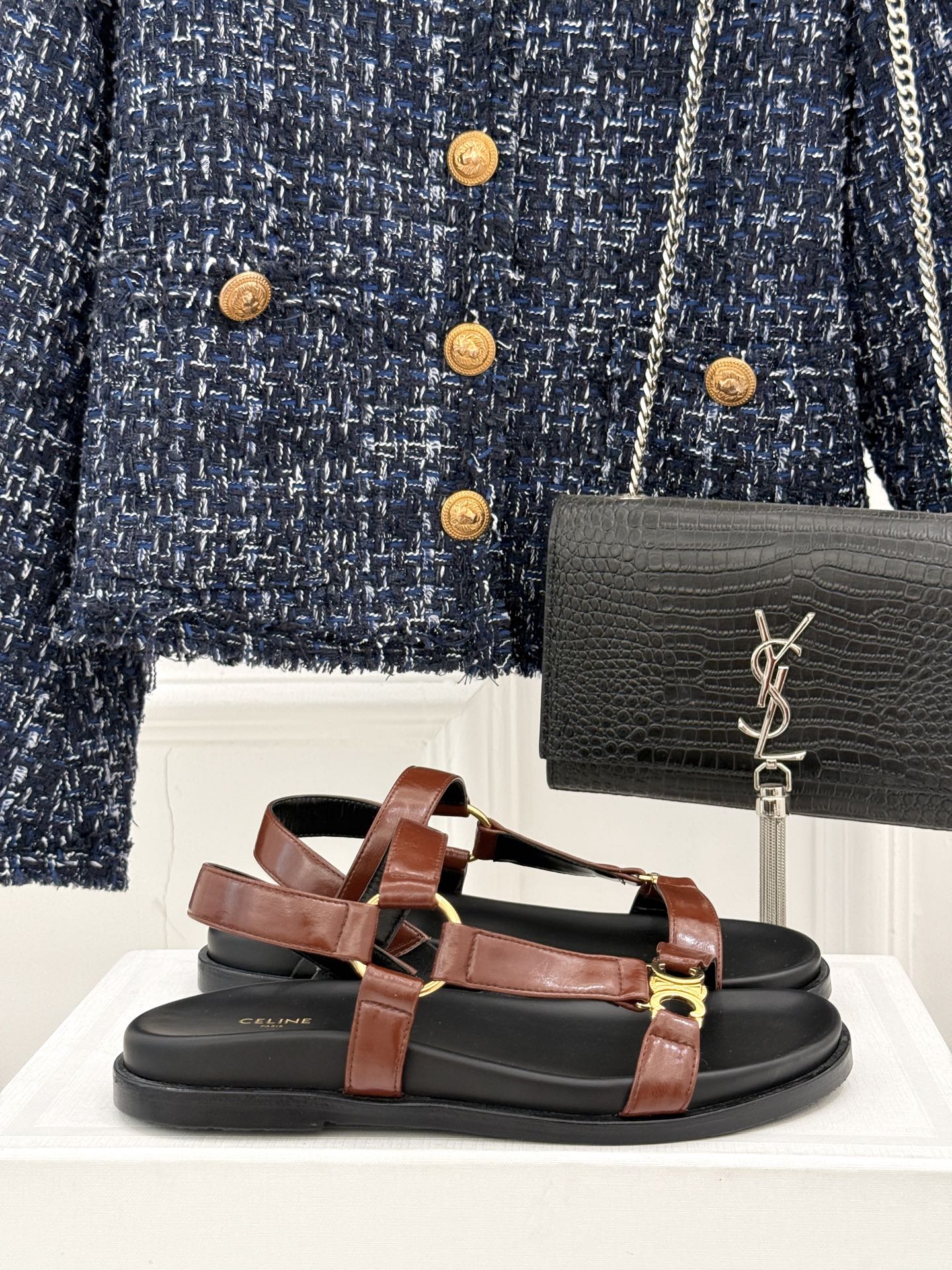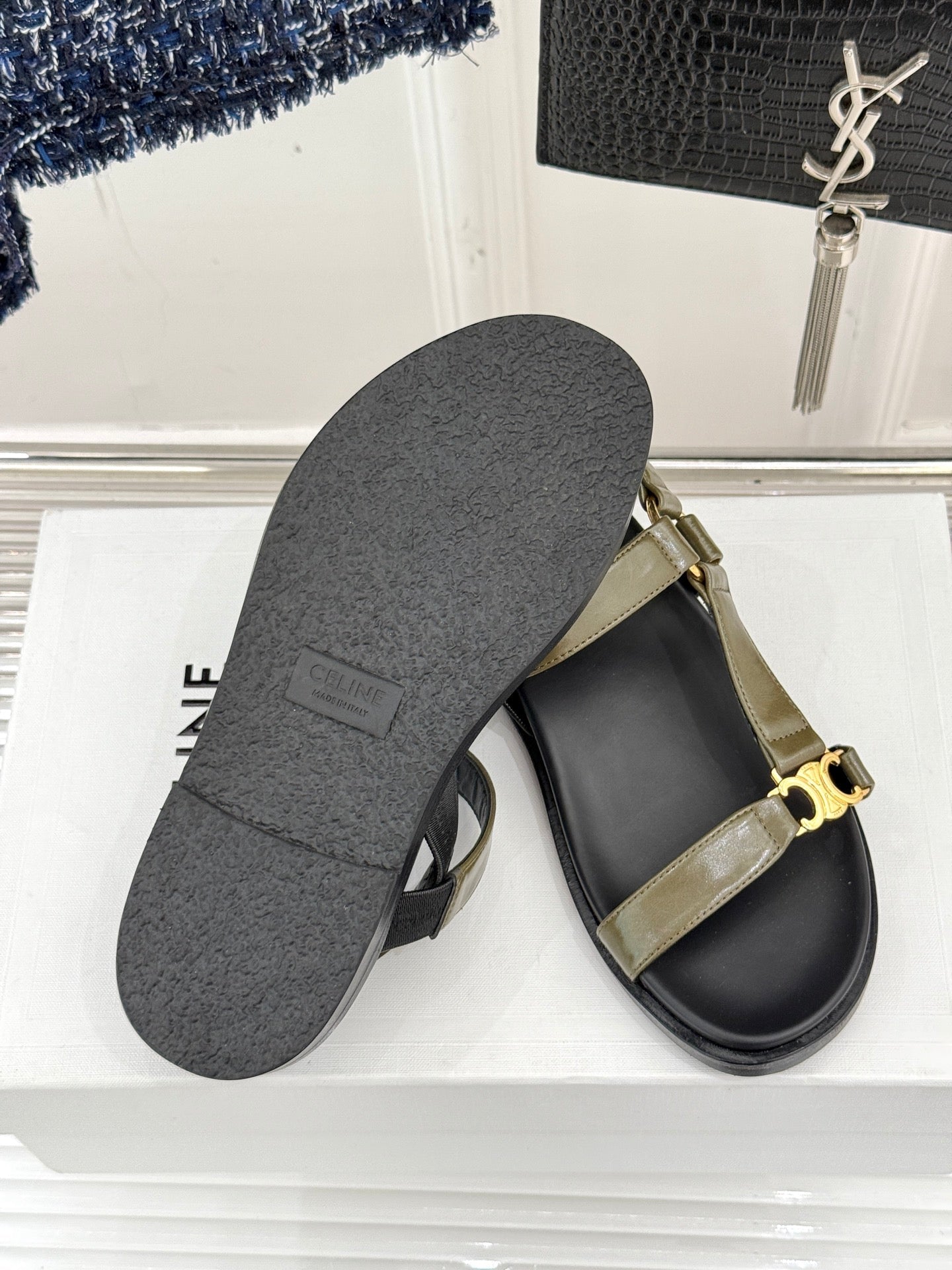 CELINE 25 Sline Sandal Black Sheepskin 285910
