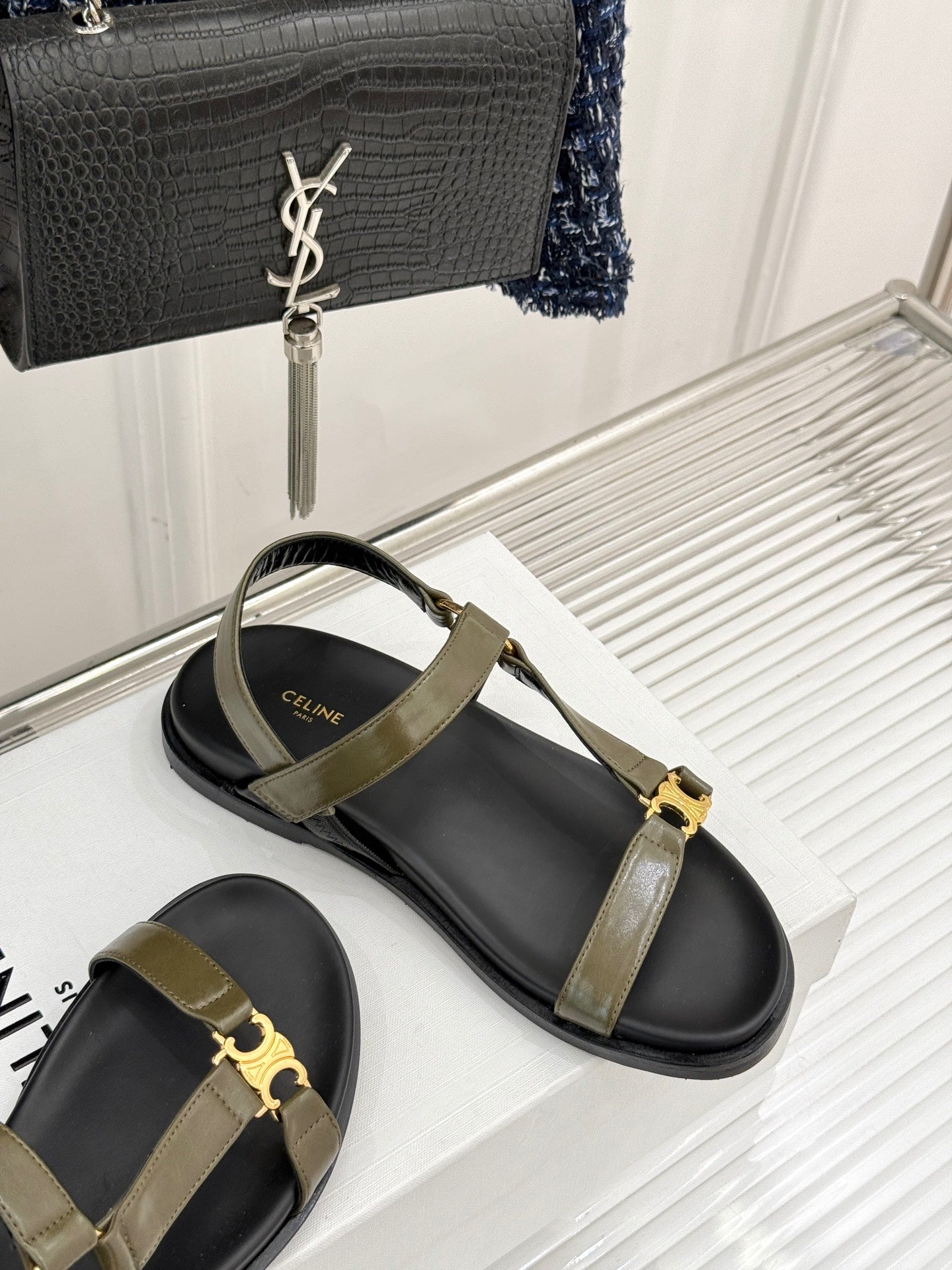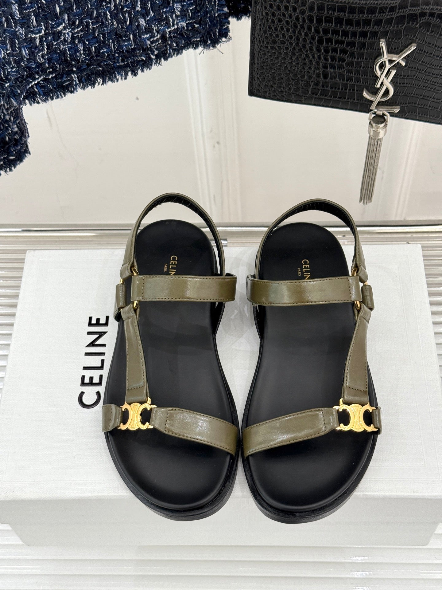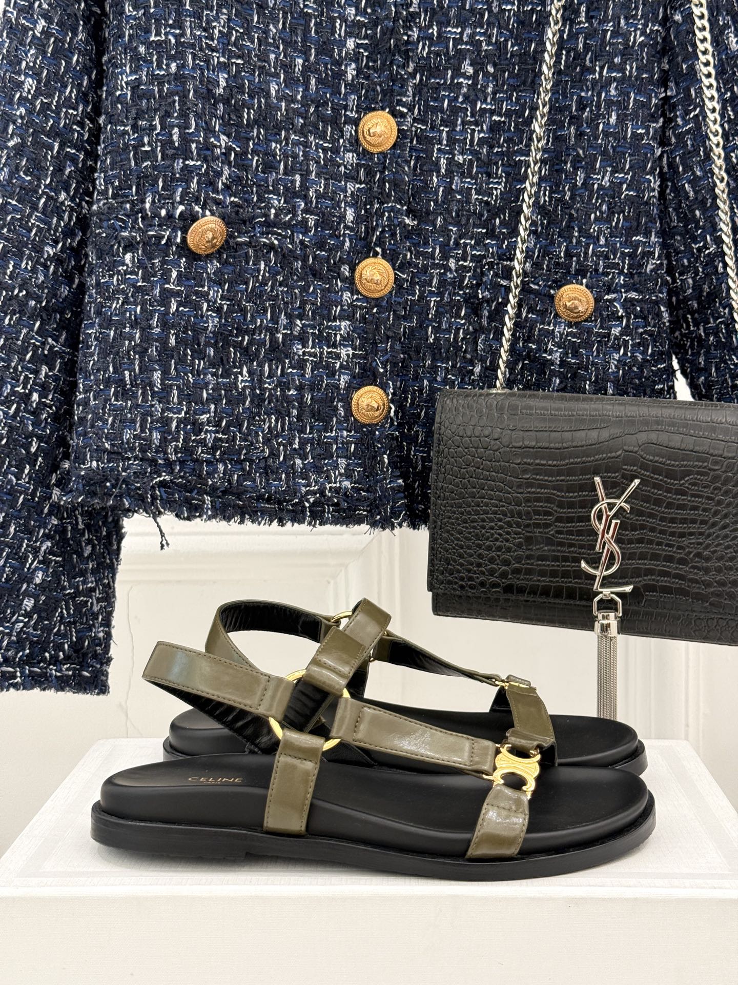 CELINE 25 Sline Sandal Black Sheepskin 285910