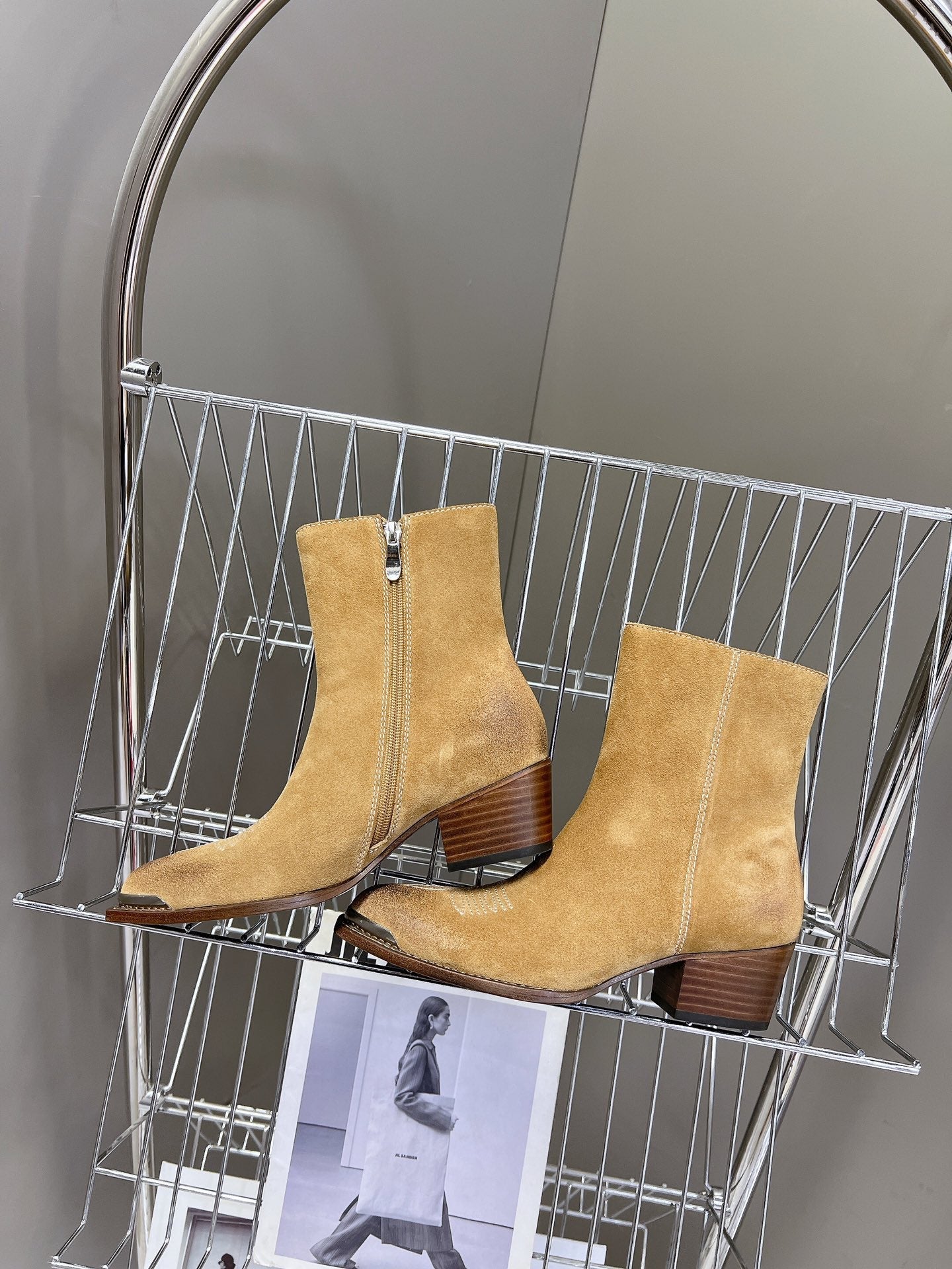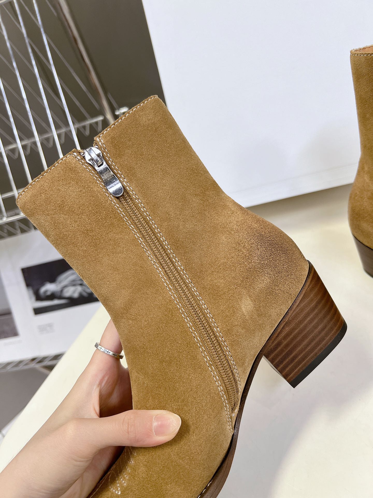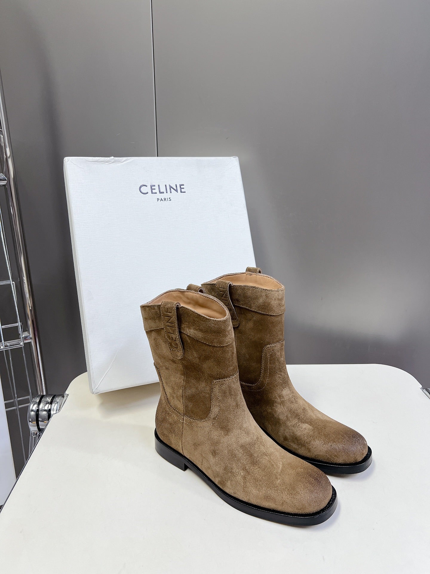 CELINE 25 Mid Calf Cowboy Boots Light Brown Suede