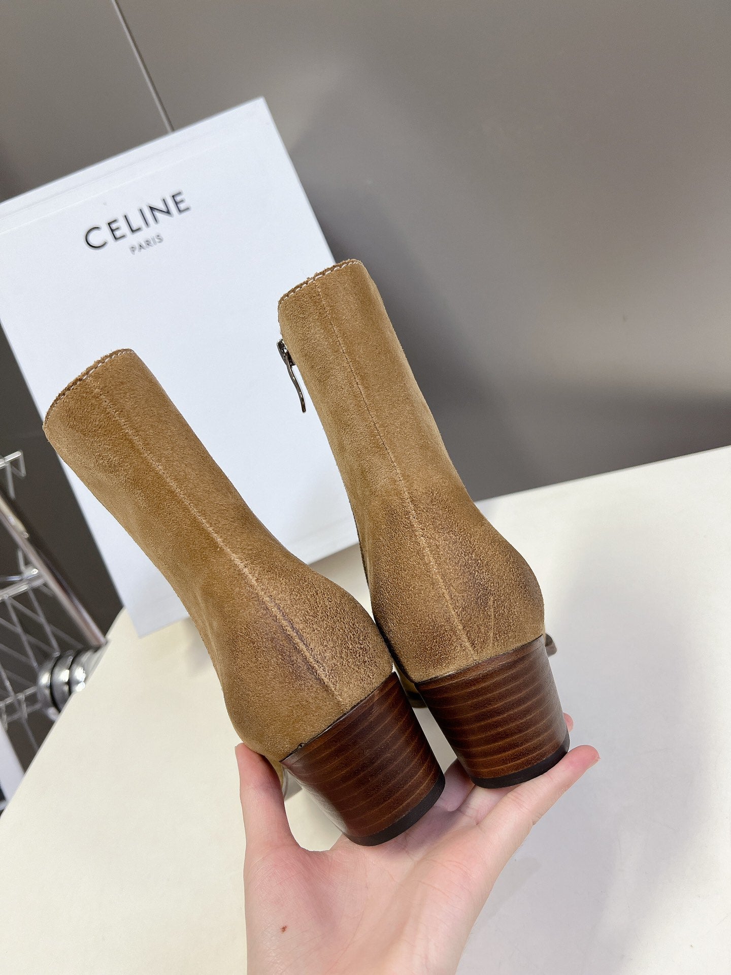 CELINE 25 Ankle Boots Yellow Suede 433390
