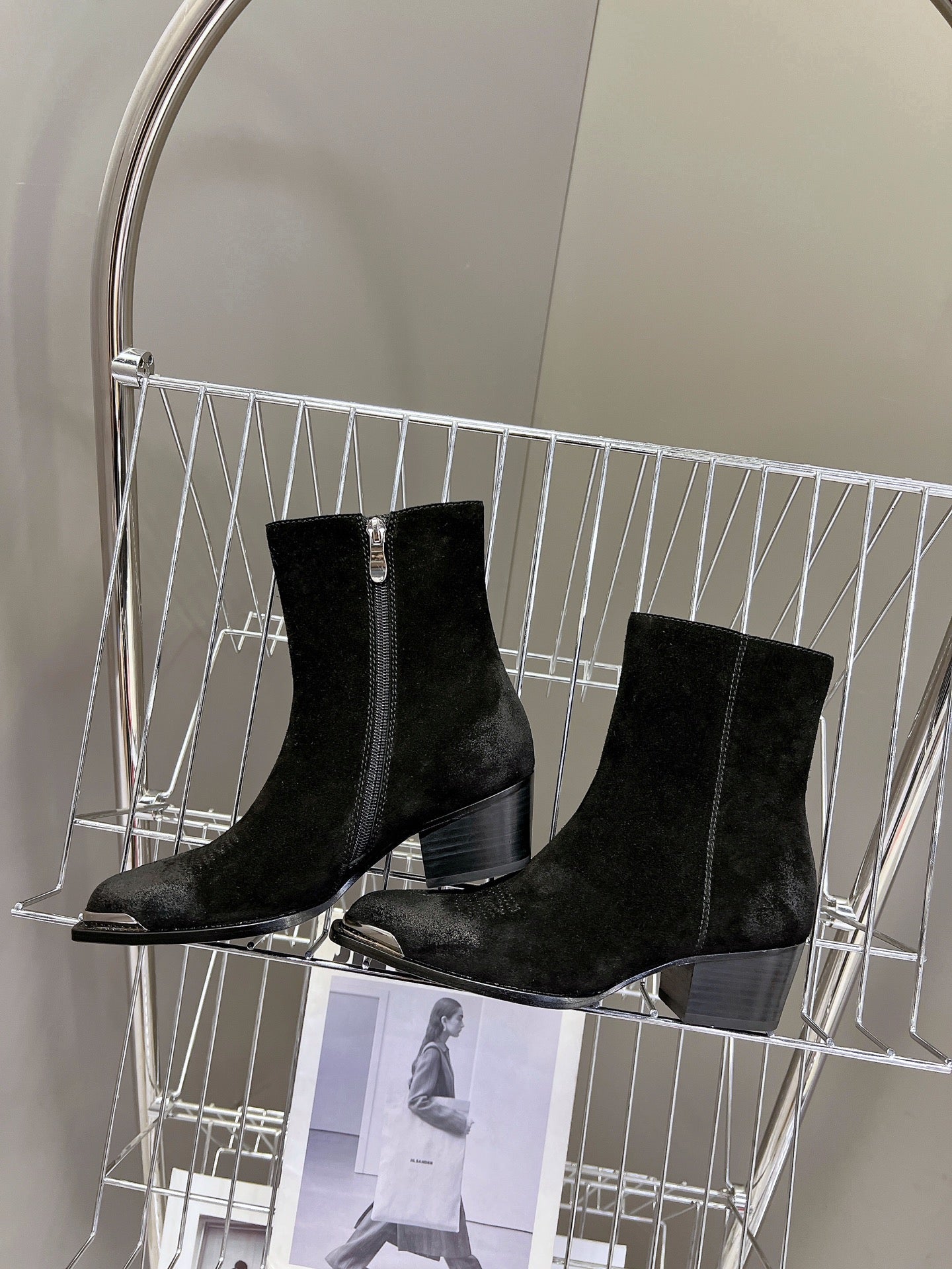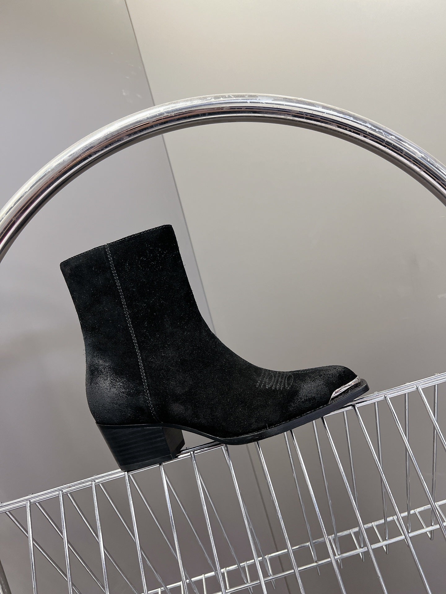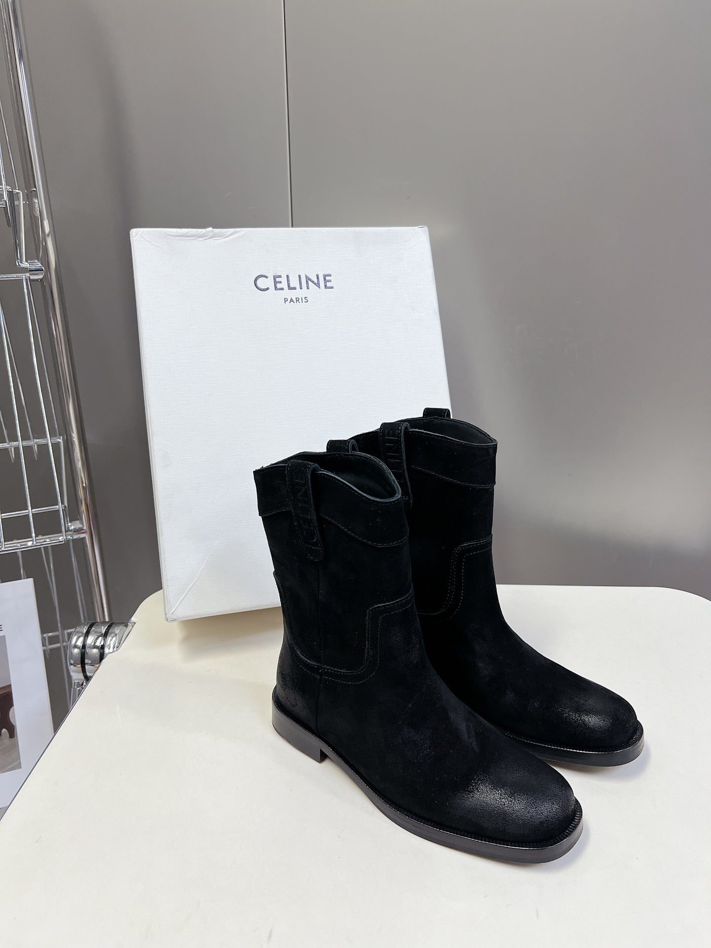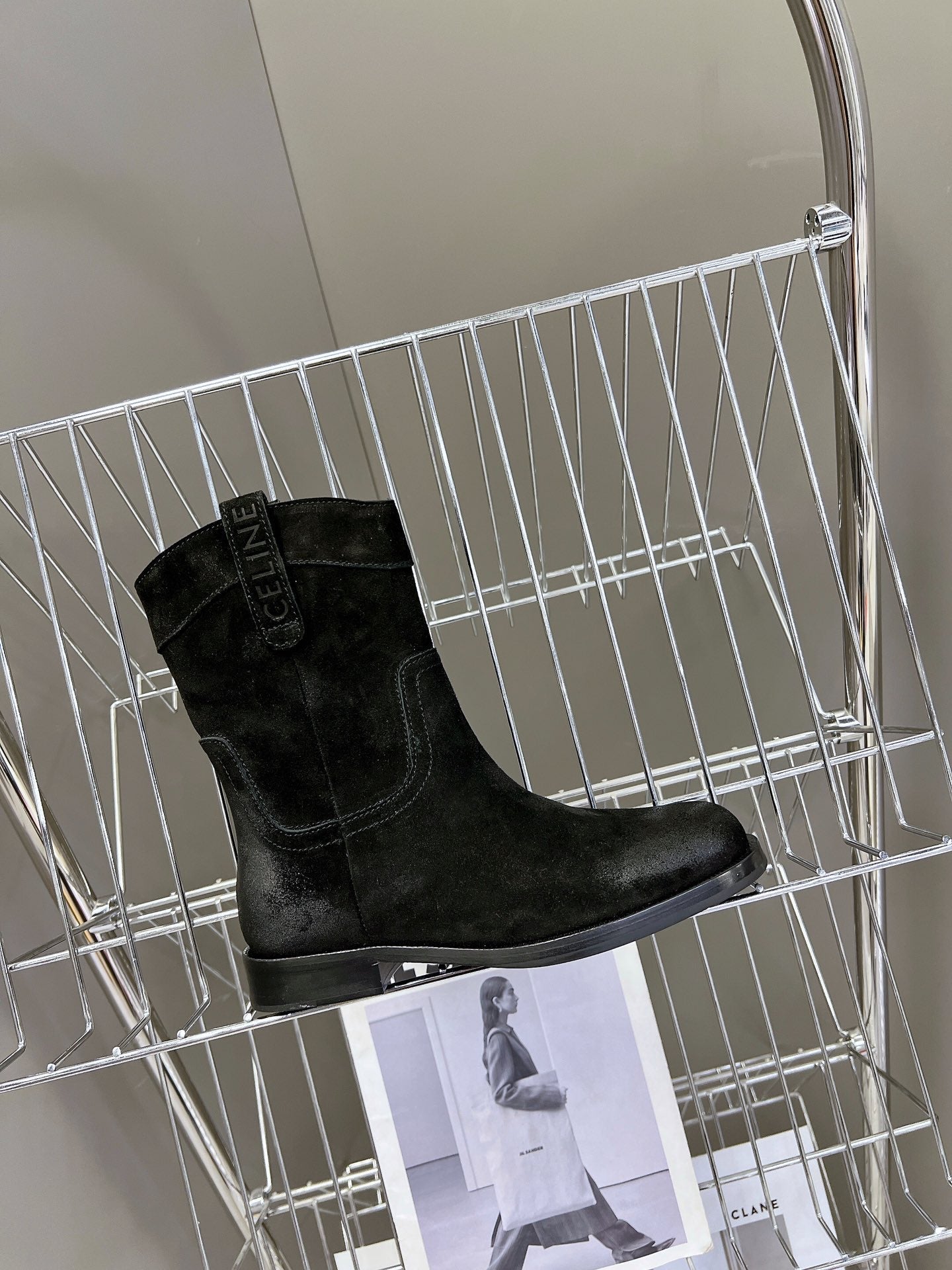 CELINE 25 Mid Calf Cowboy Boots Black Suede 434426