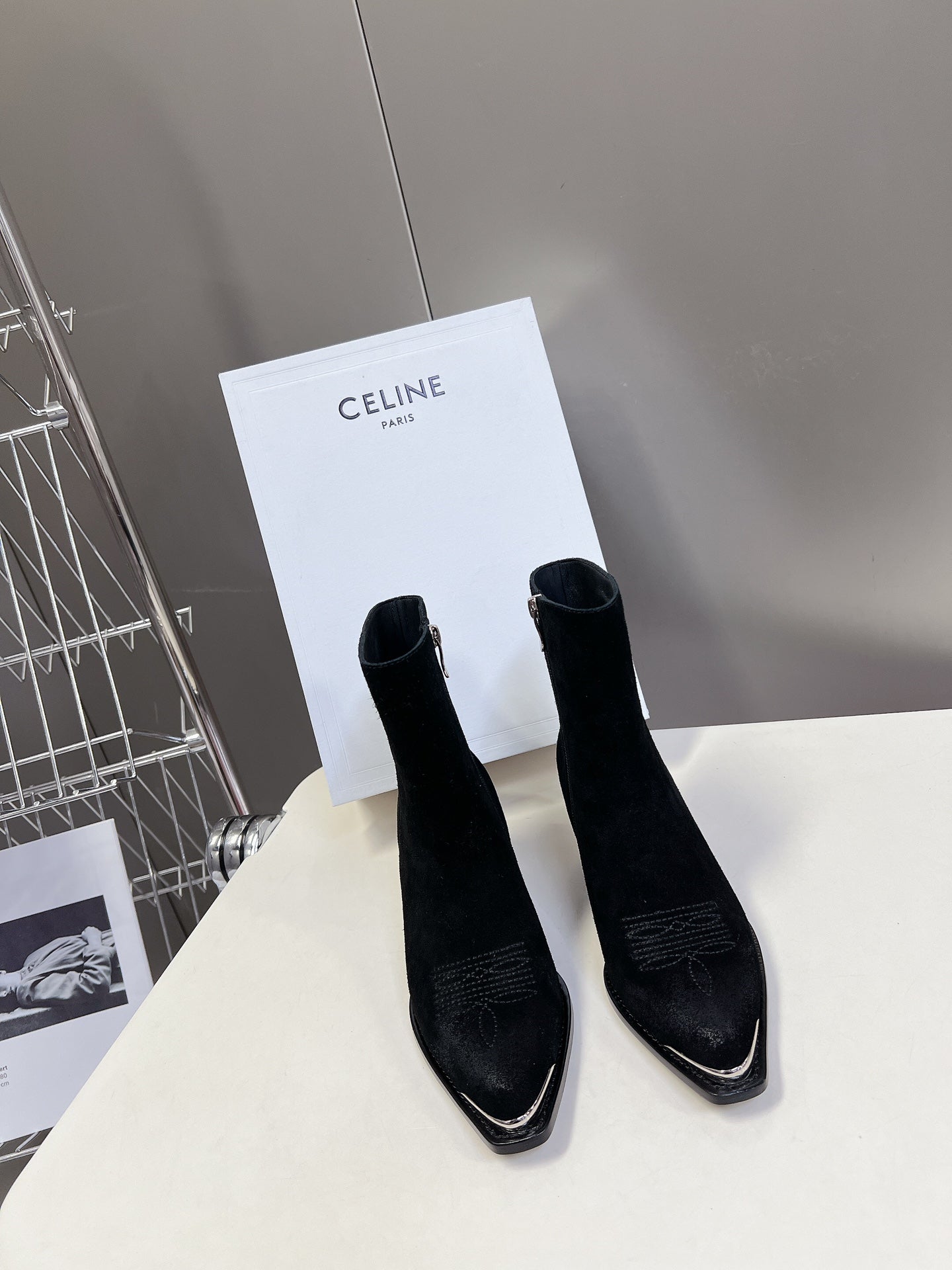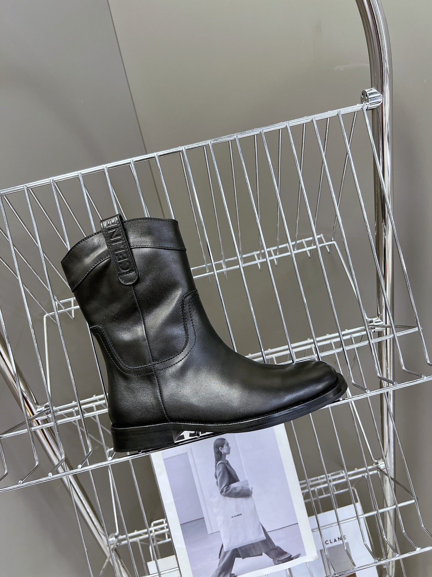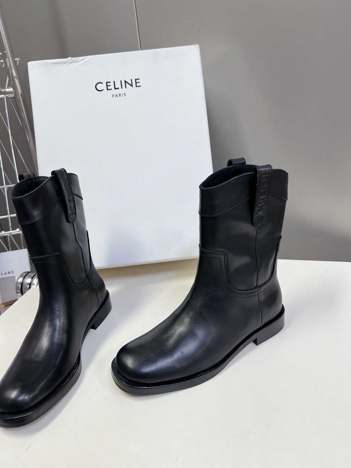 CELINE 25 Cowboy Boots Black Calfskin 434419