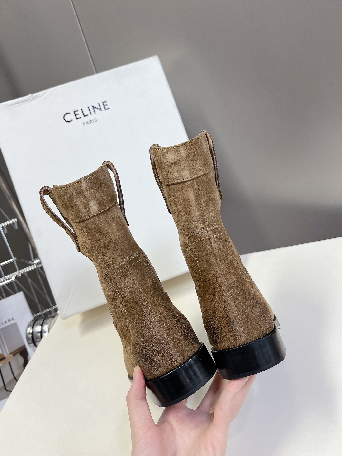 CELINE 25 Cowboy Boots Light Brown Suede 434415