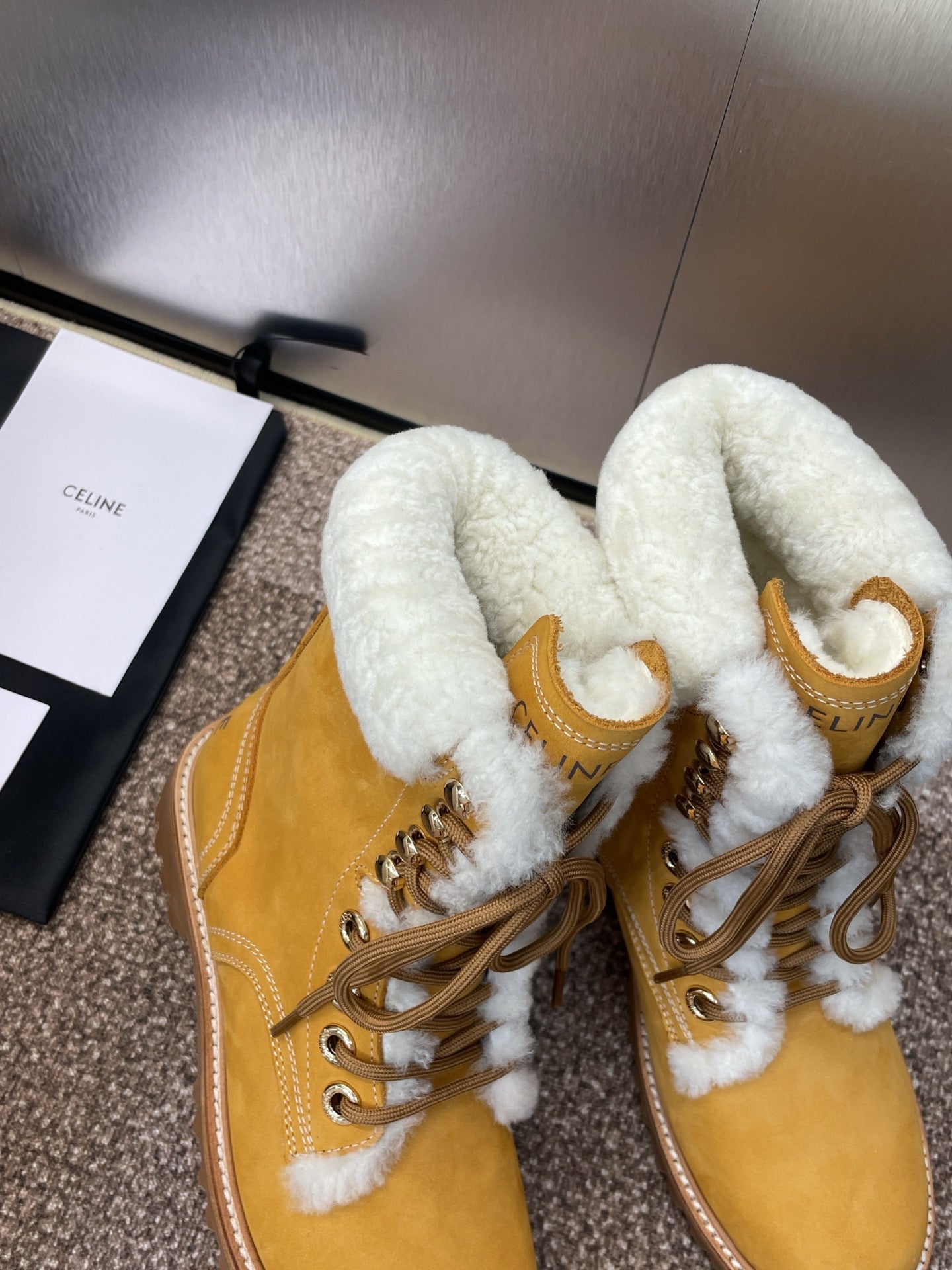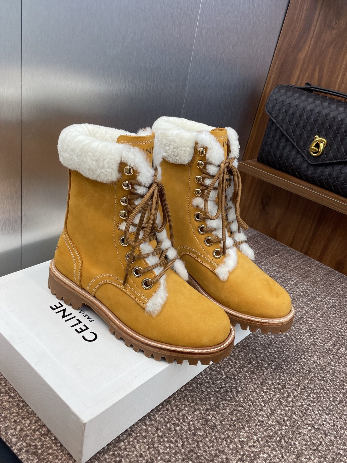 Celine 25 Fur-lined Ankle Boot Tan Suede Wool 554185