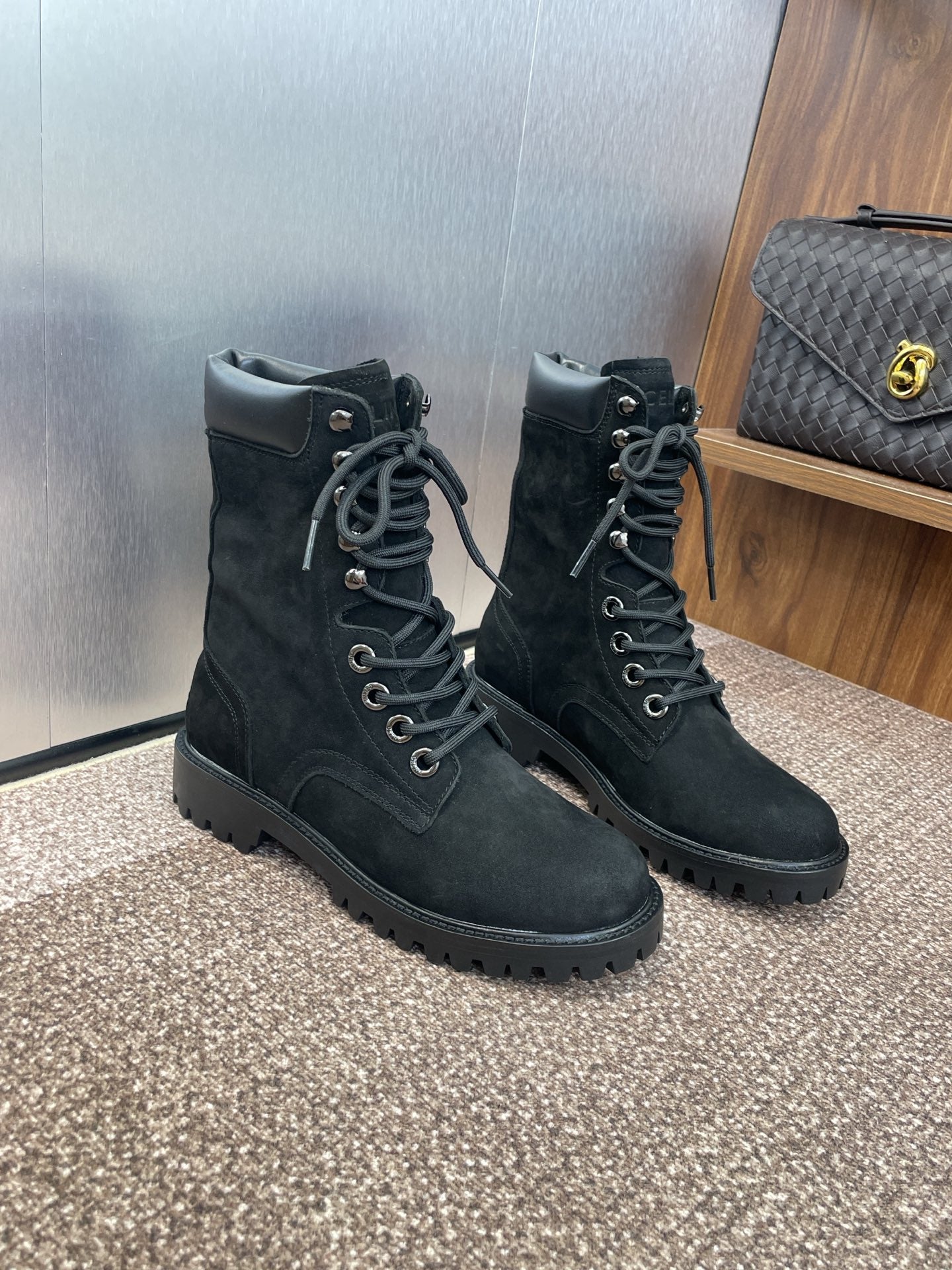 Celine 25 Bulky Lace-up Boot Black Suede 554011