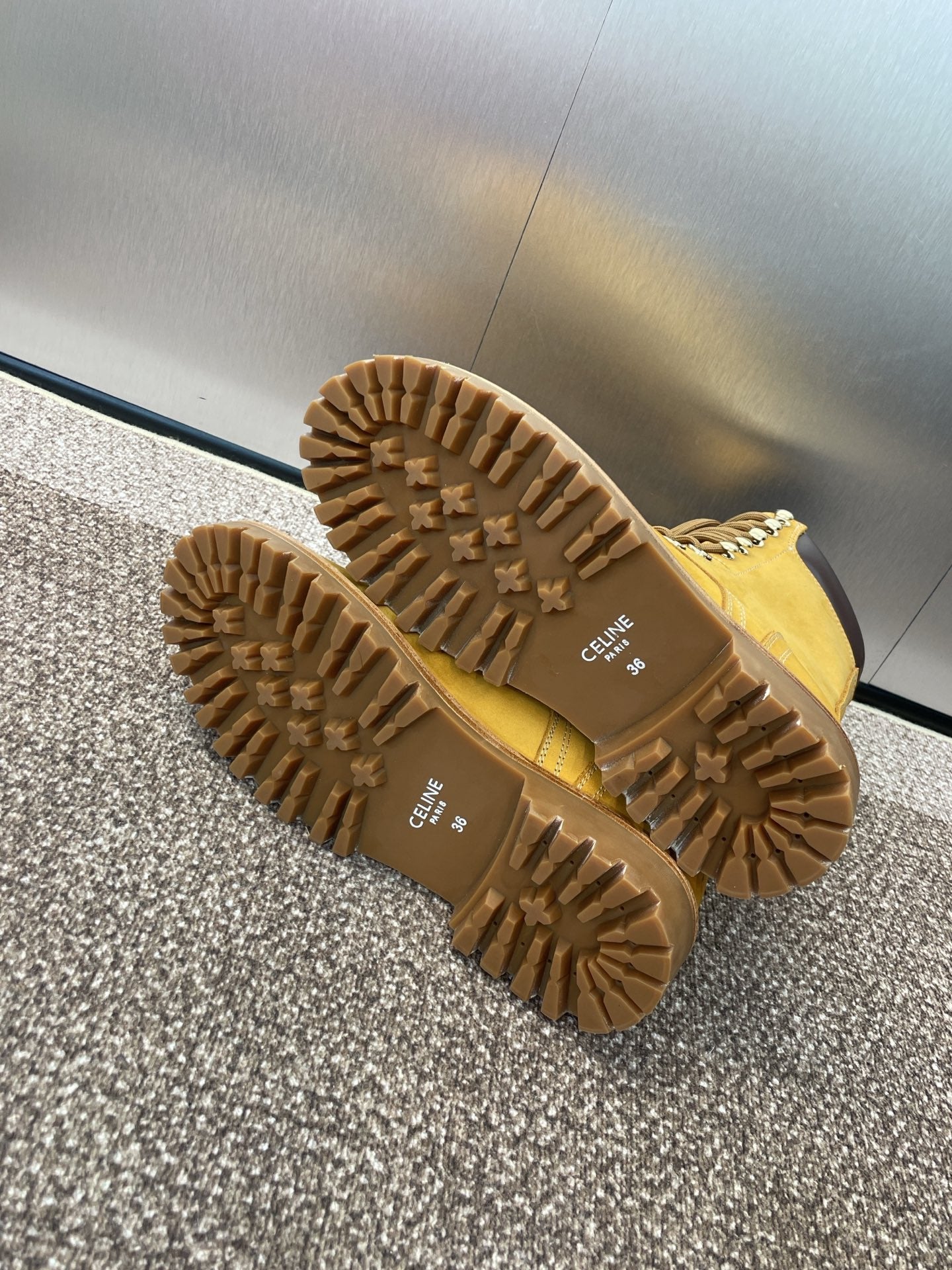 Celine 25 Bulky Lace-up Boot Tan Suede 554012