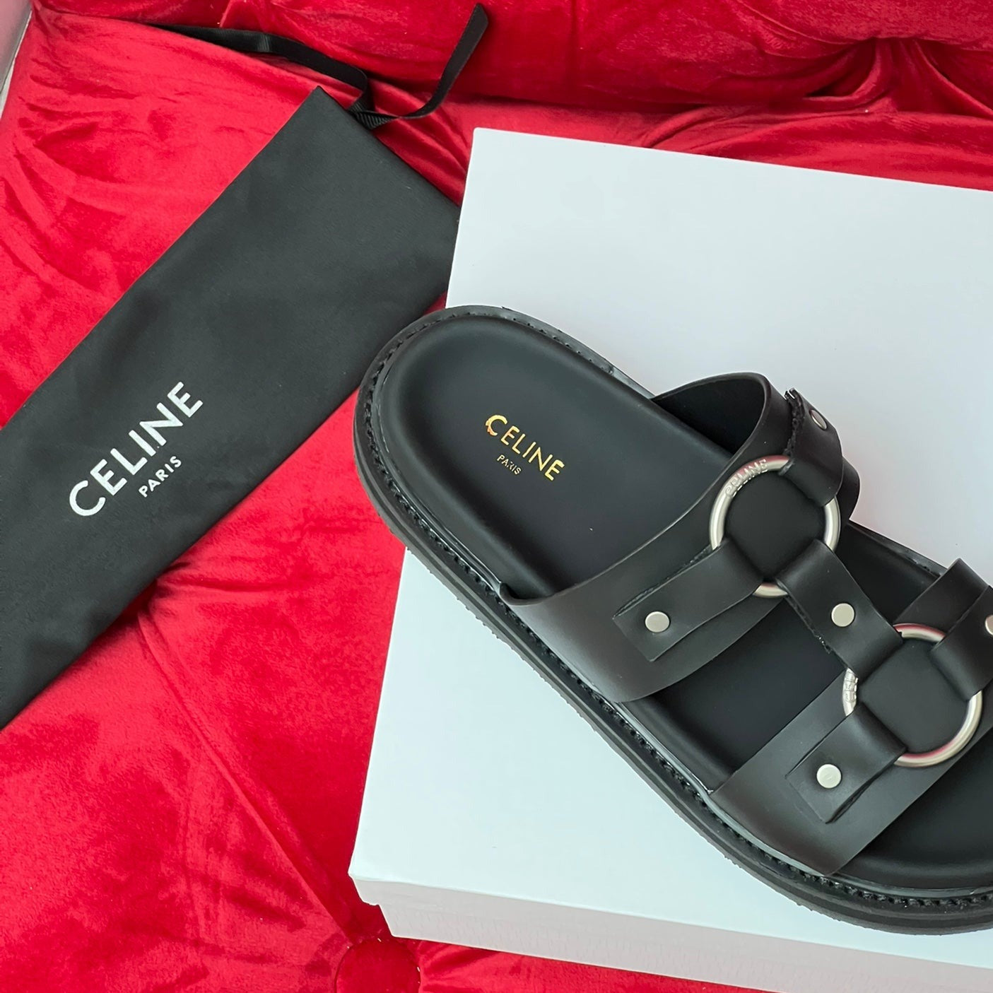 TRIOMPHE SLIDE IN BLACK CALFSKIN