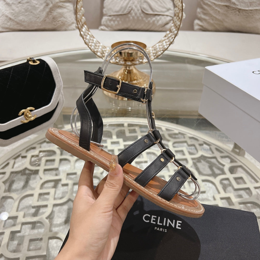 Celin Ballerina Triple Strap Black Patent Calfskin