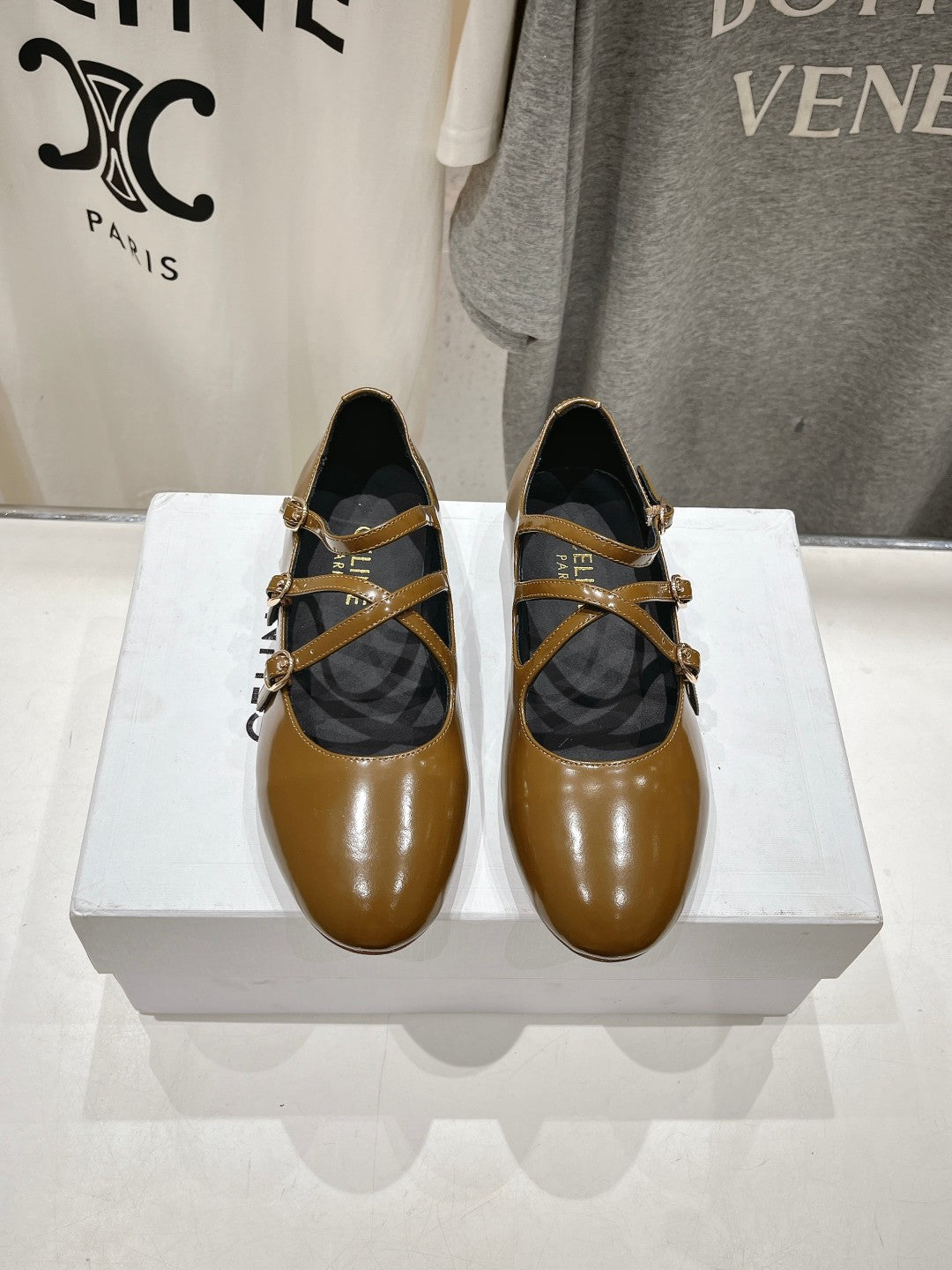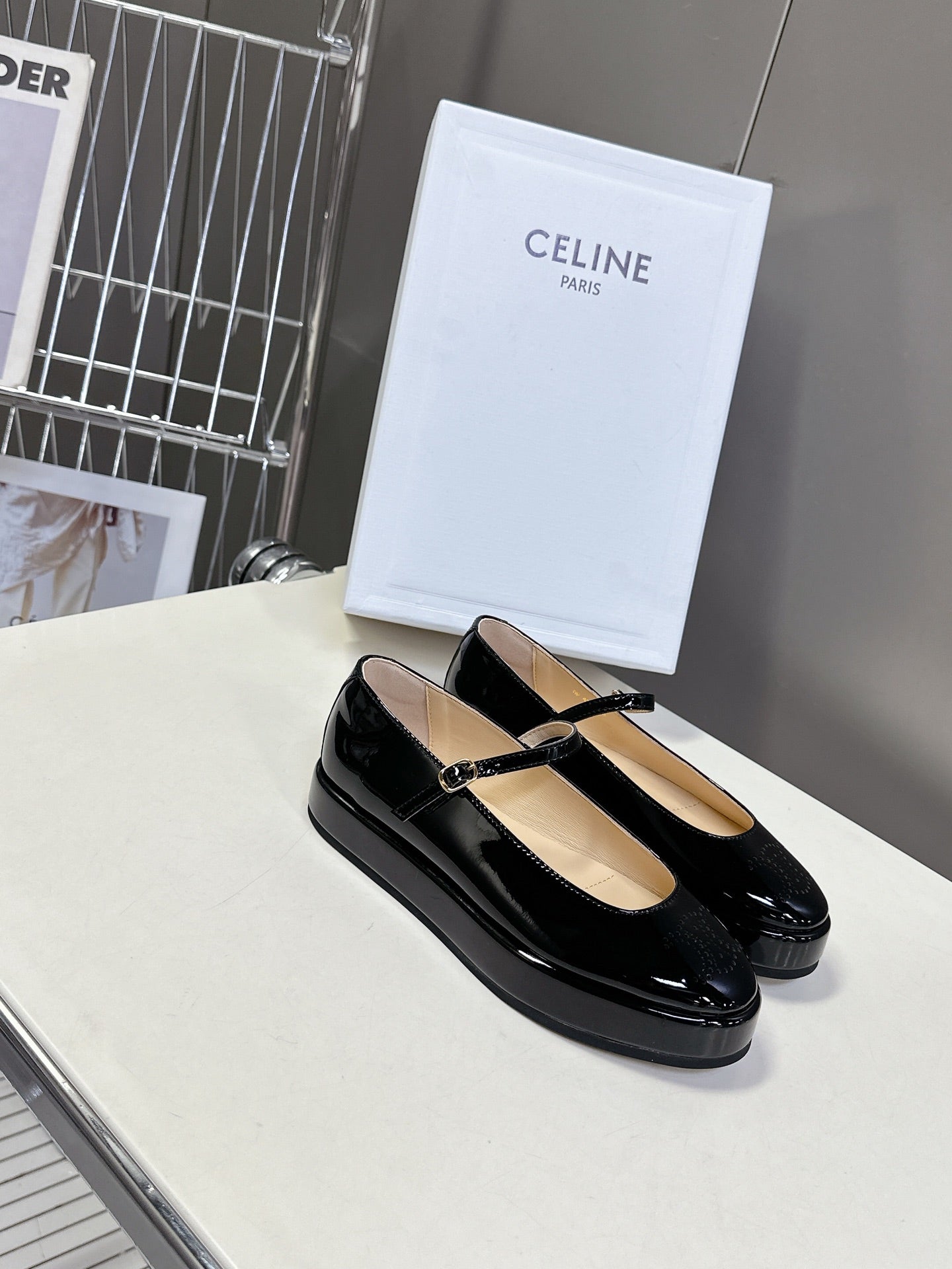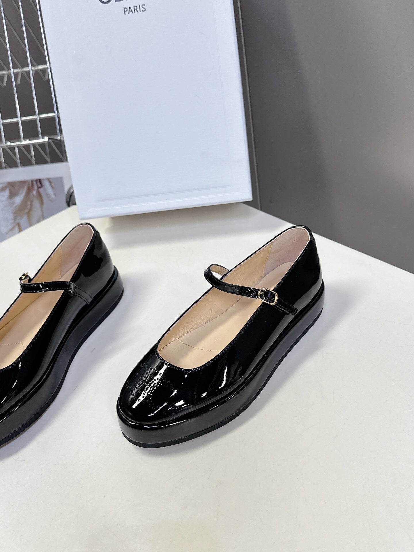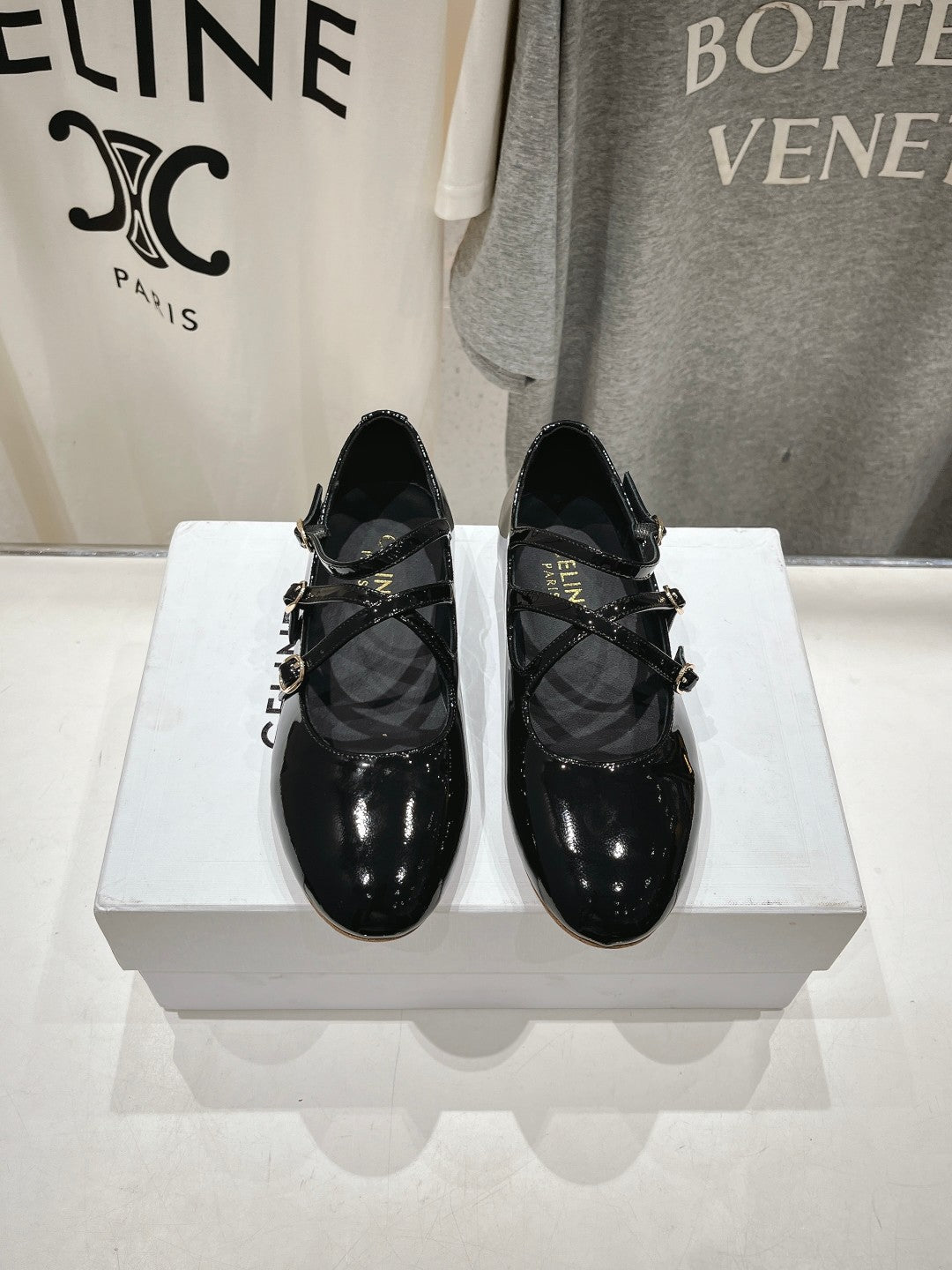 CELINE 25C Ballet Flats Black Patent Leather 236744