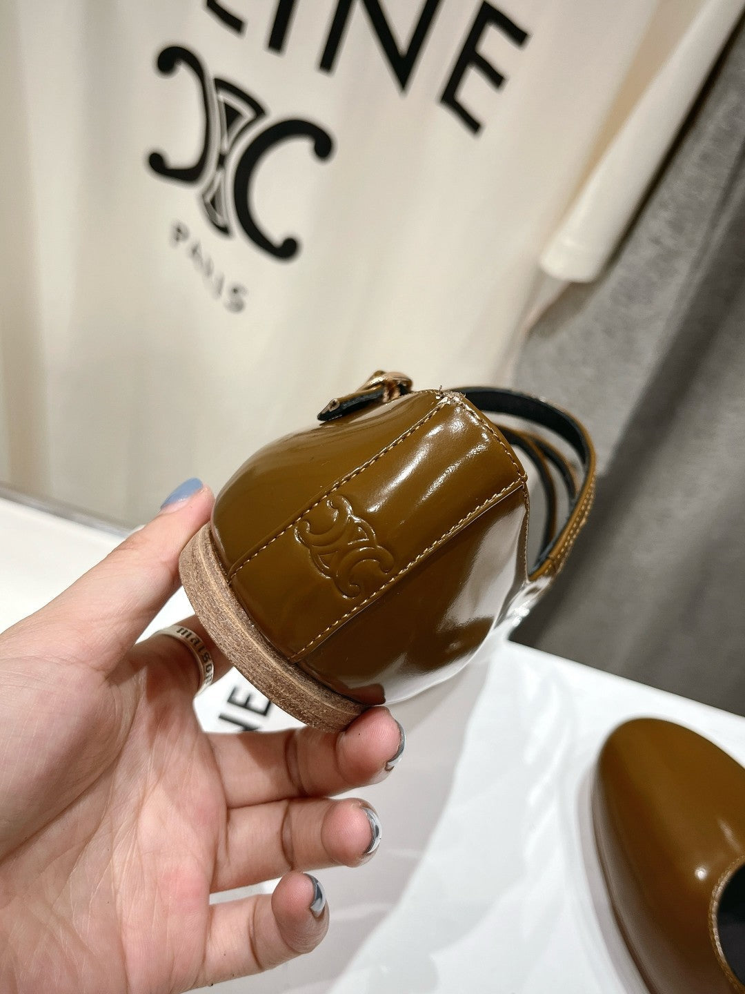 Celin Ballerina Triple Strap Black Patent Calfskin