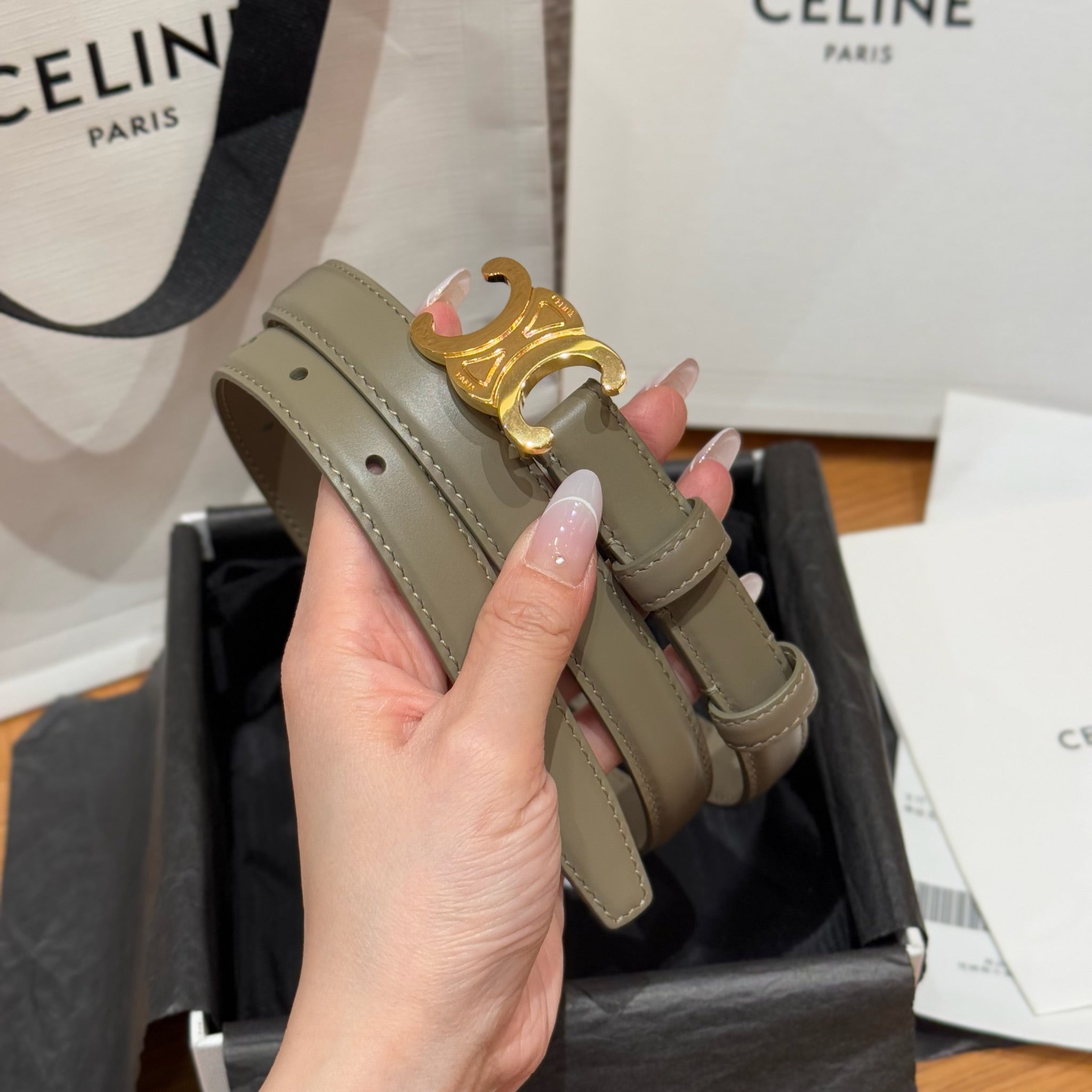 CEL 25mm Triomphe Belt Gray Green Taurillon Leather 176672