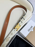 CEL Gold 25mm Triomphe Belt White Beige Canvas 180418