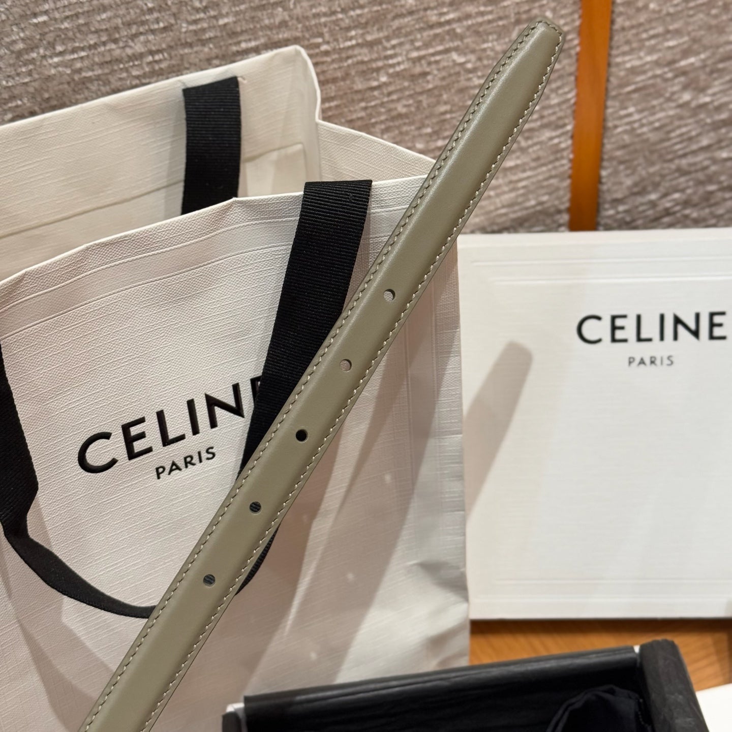 CEL Triomphe Belt 18mm Etoupe Gold Calfskin 187492