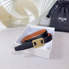CL MEDIUM 25 MM REVERSIBLE FRAMED TRIOMPHE BELT BLACK AND BRONZE BROWN CALFSKIN LIGHT GOLD HARDWARE