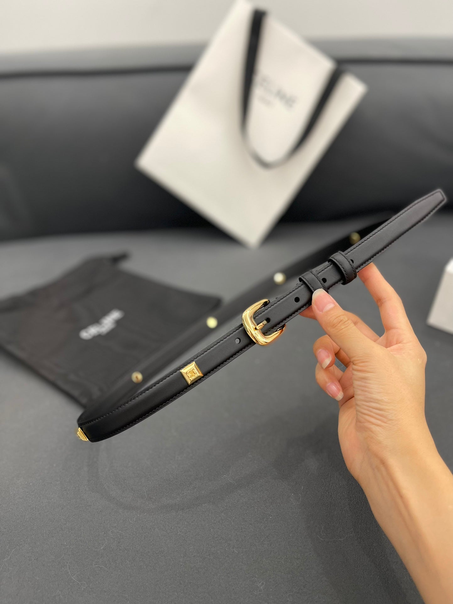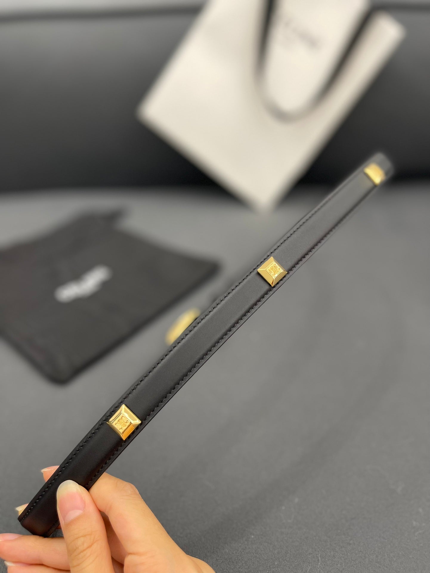 Medium Triomphe Belt 25mm Black Calfskin Gold Finishing