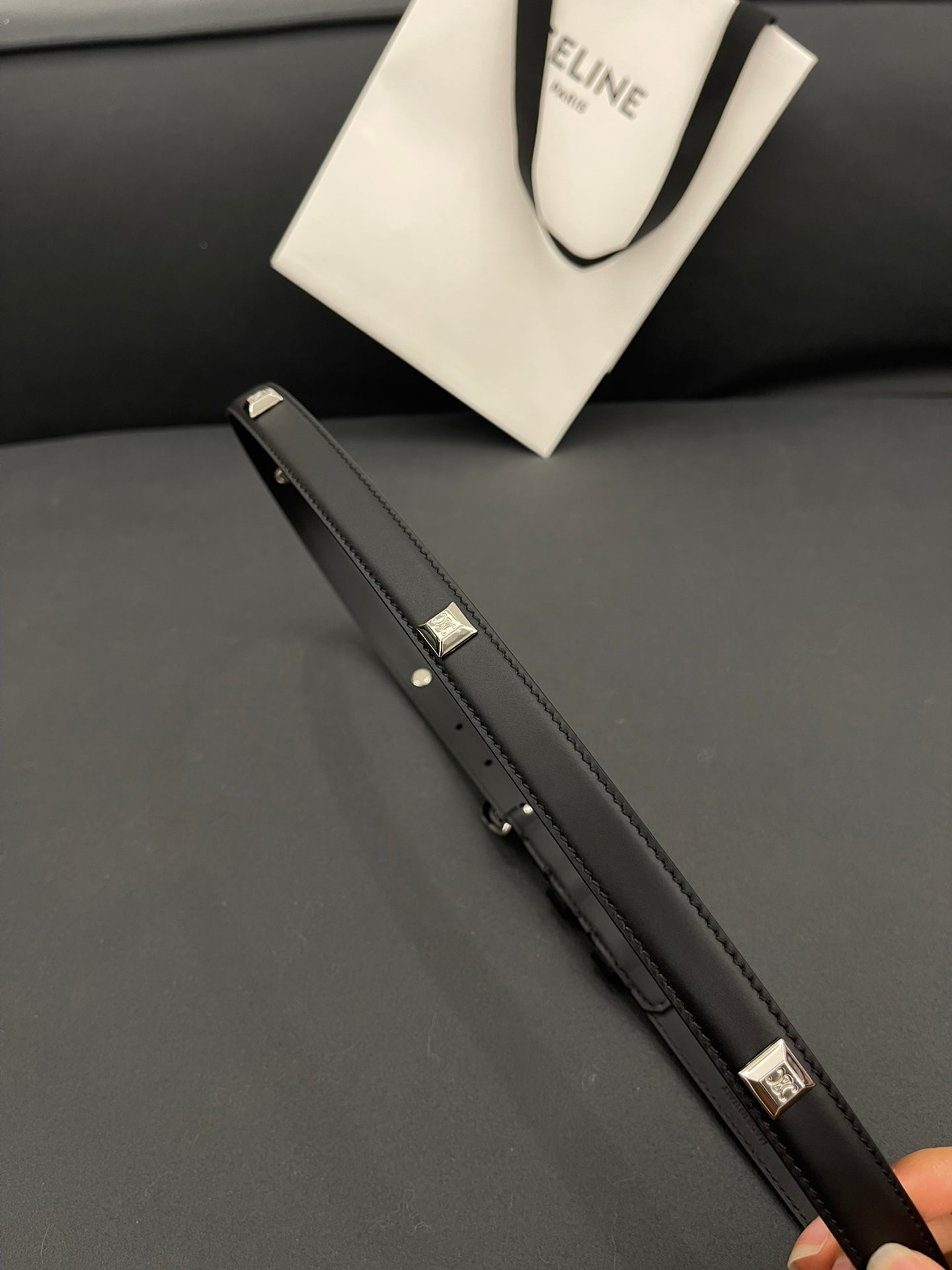 CL MEDIUM 25 MM MARCO BELT WITH STRASS IN BLACK CALFSKIN SILVER HARDWARE