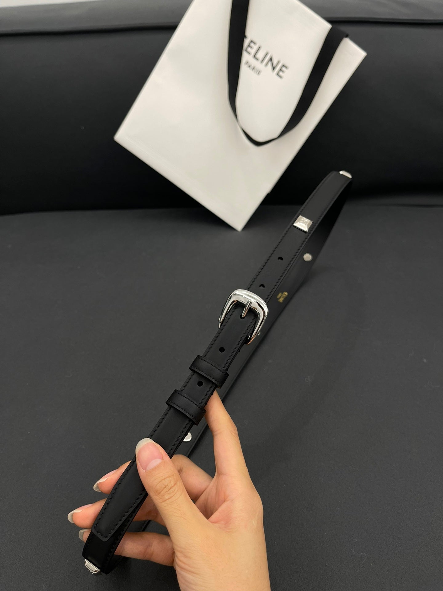 Medium Spike Belt 25mm Black Calfskin Loop Silver Silver Finishing