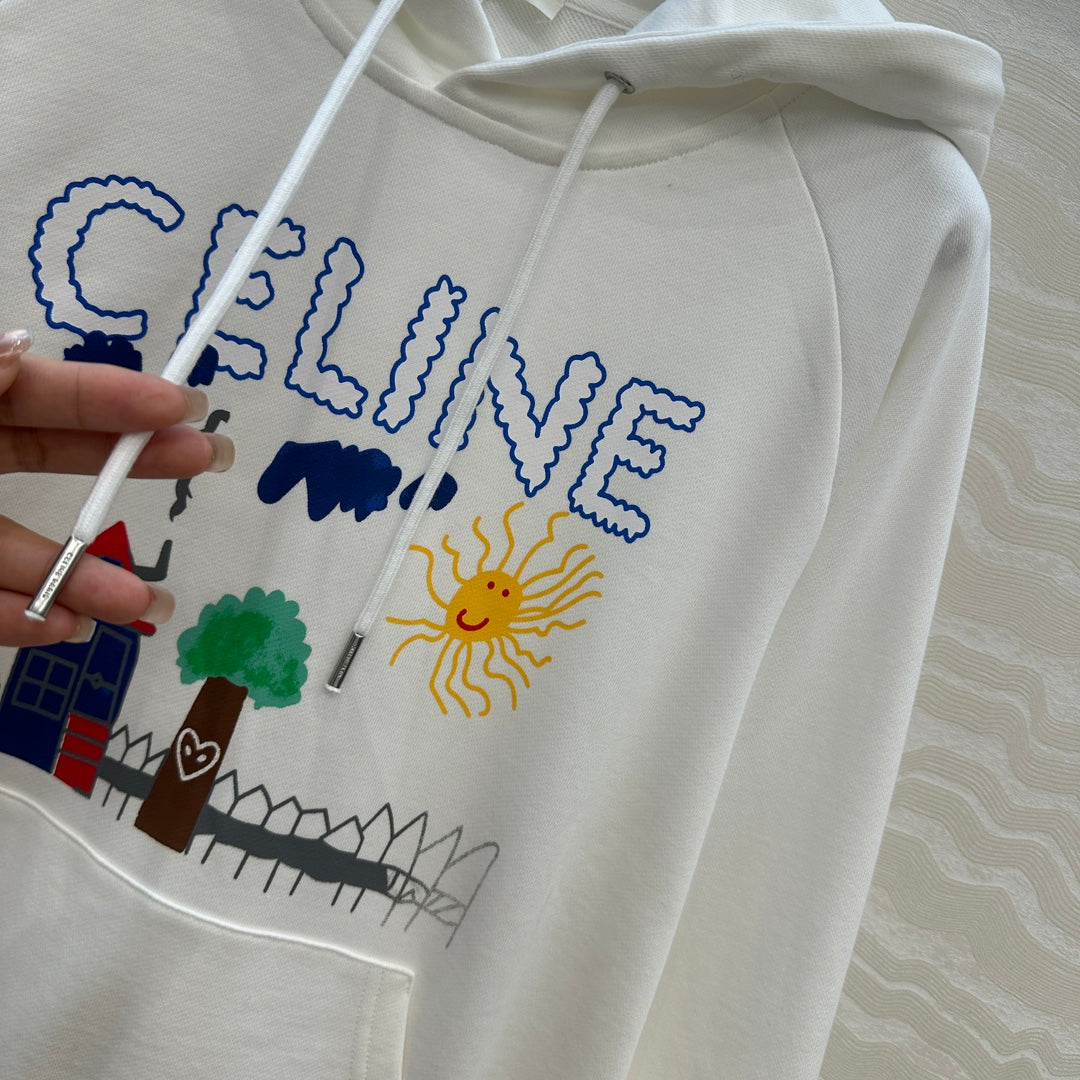 Celine 25 Hooded Sweatshirt White mix colors Cotton