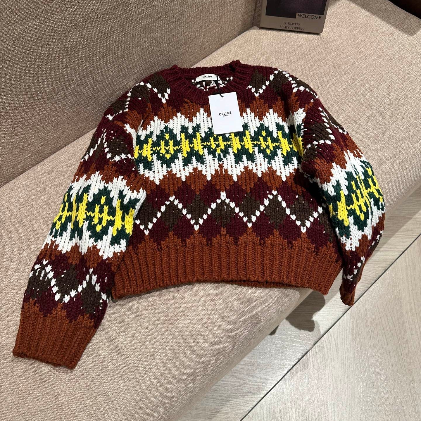 Celine 25 Sweater Brown Mix Multicolor Wool 302948
