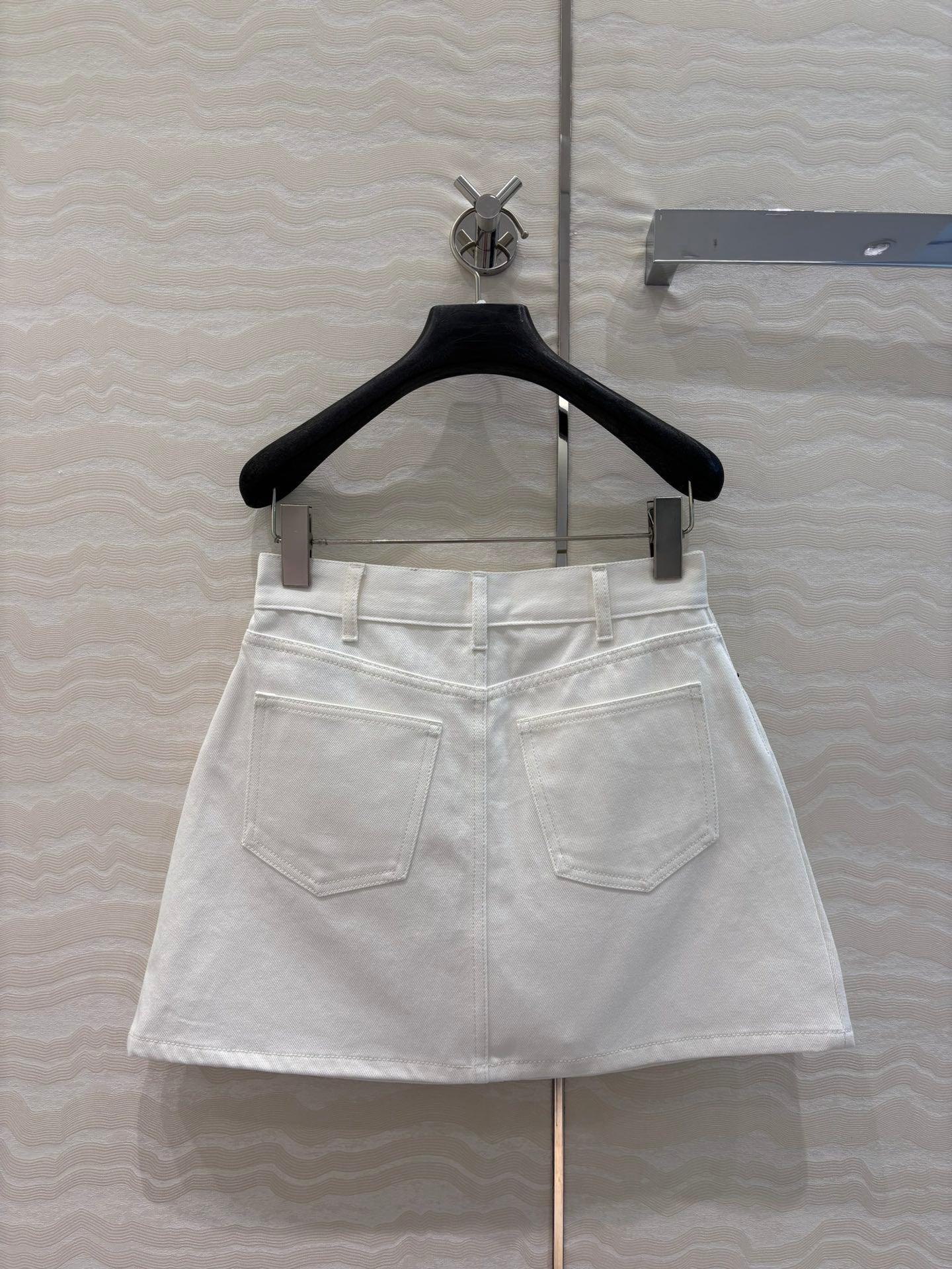 Celine Arc de Triomphe Metal Buckle skirt White Lambskin
