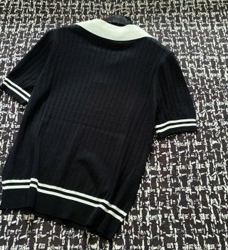 Celine 2025 Striped Polo Shirt Blue Black White Cotton