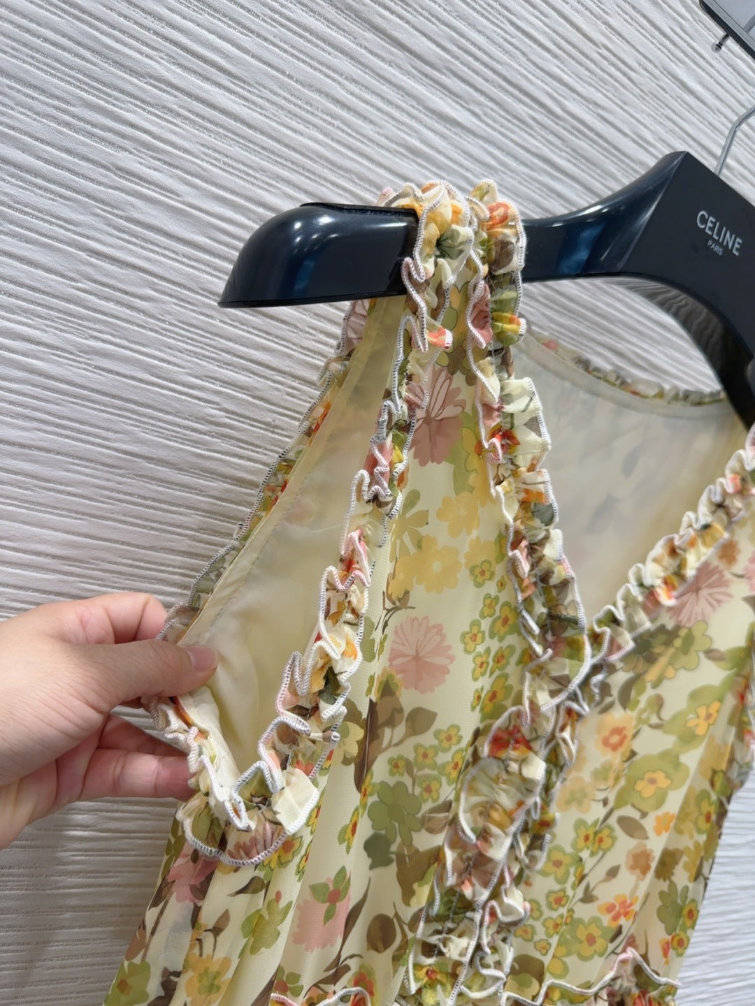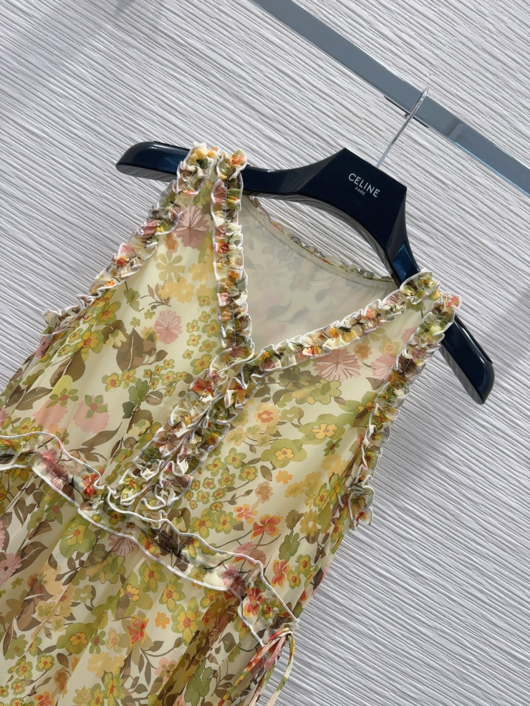 Celine 25 Floral Sleeveless Dress Green mix colors Polyester