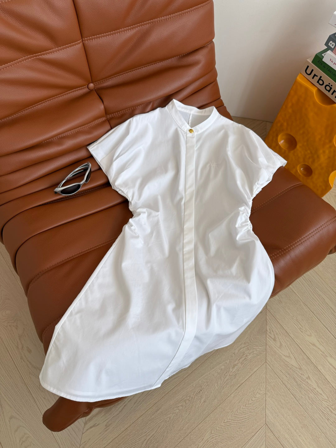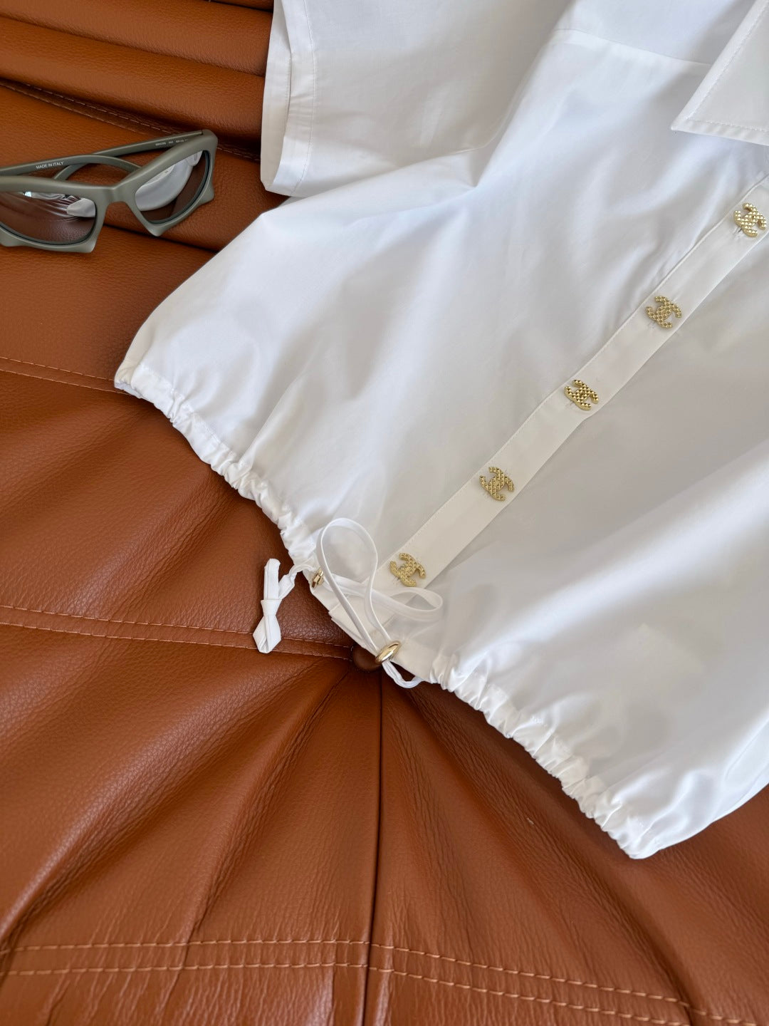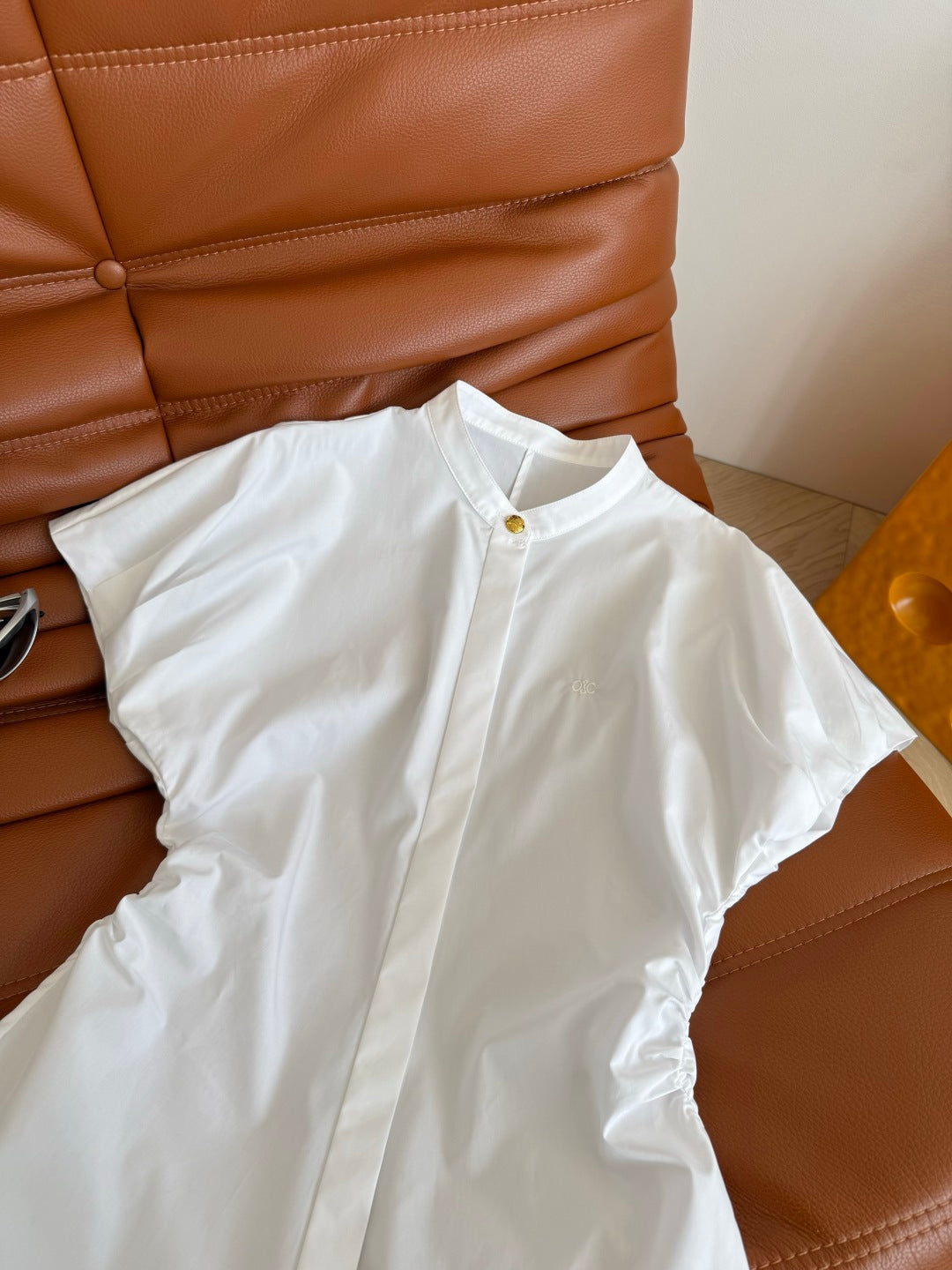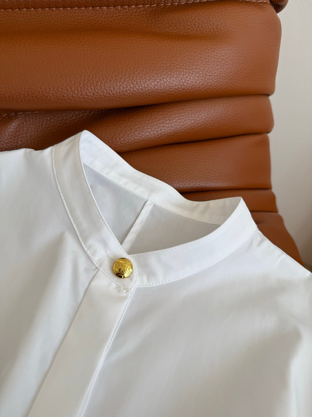 Celine 25 Hollow Shirt Dress with Gold Metal Button White Cotton