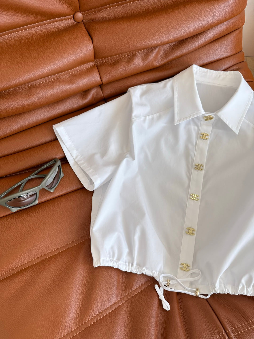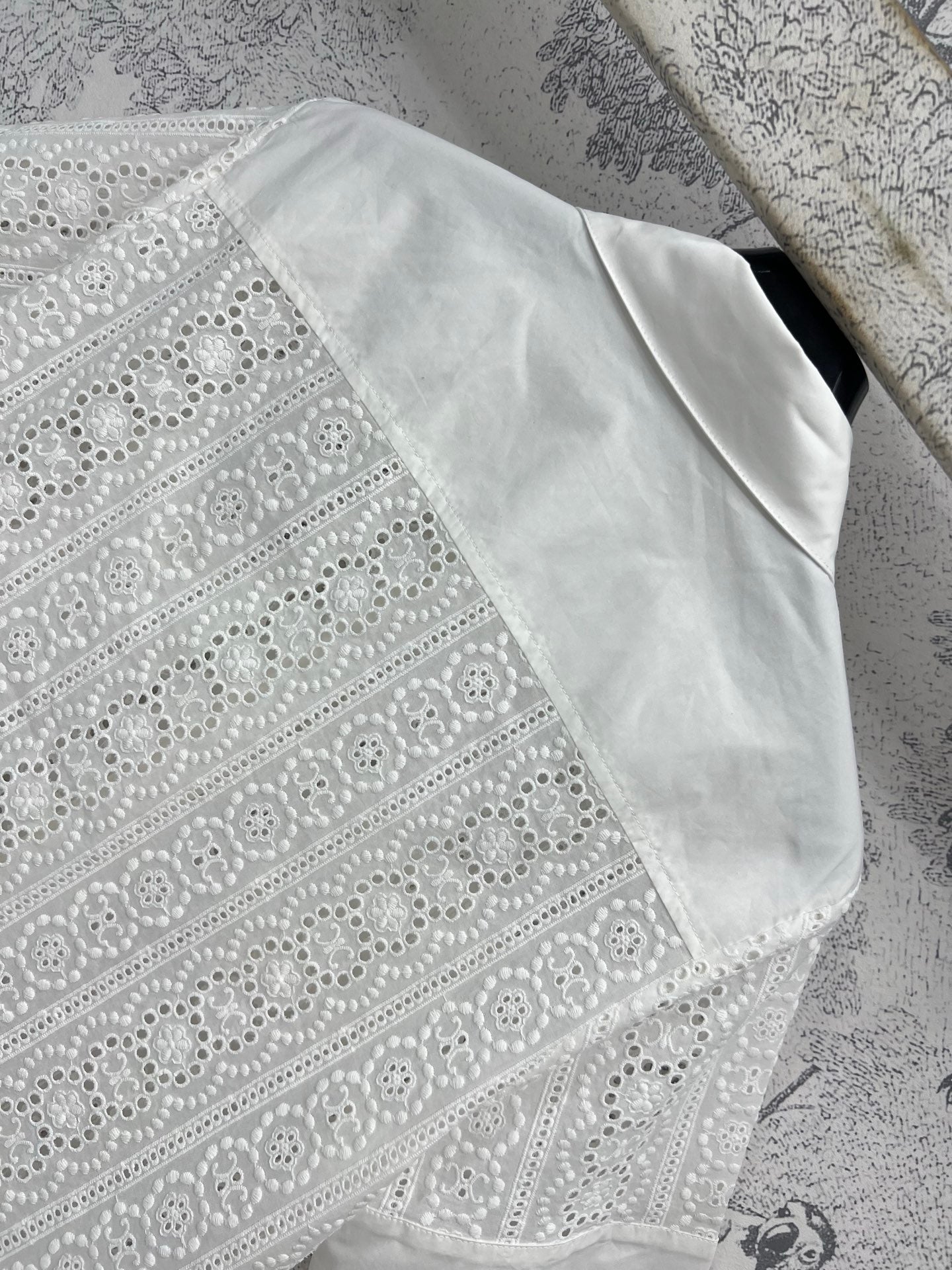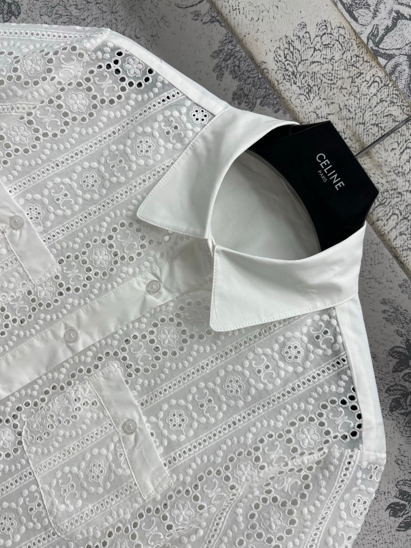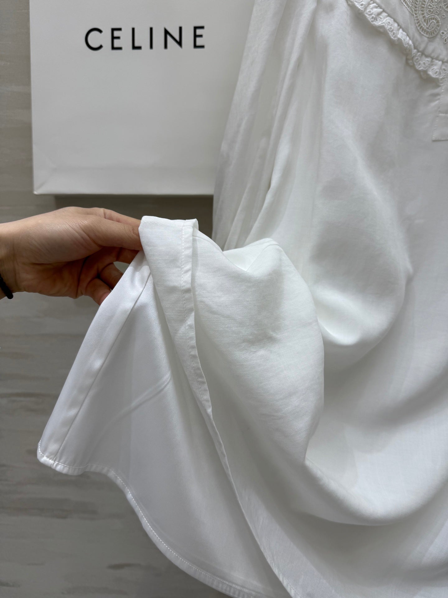 Celine 25 Hollow Shirt Dress with Gold Metal Button White Cotton