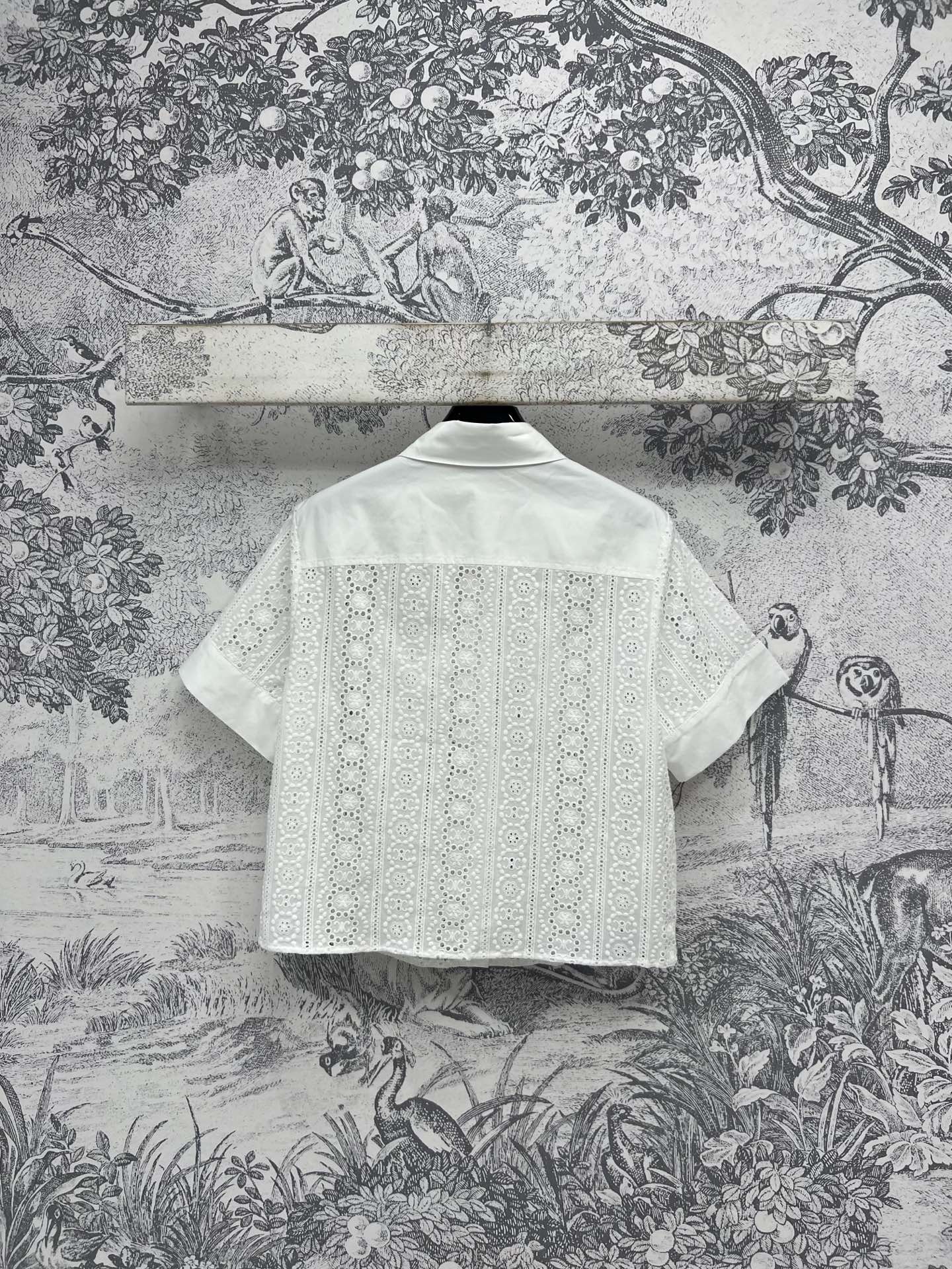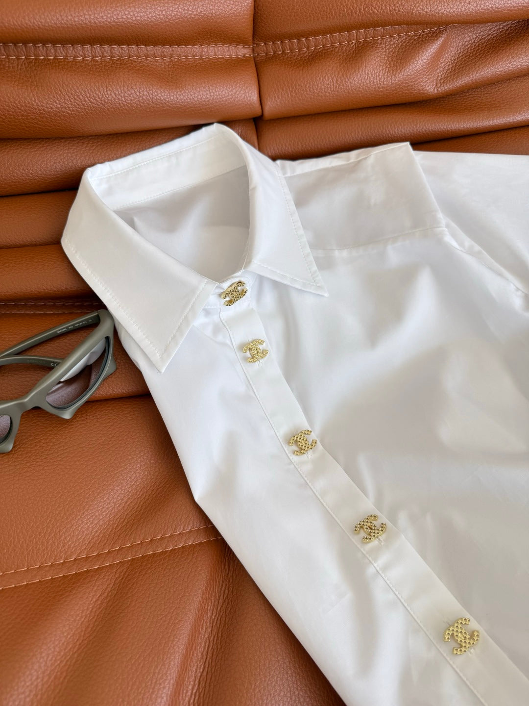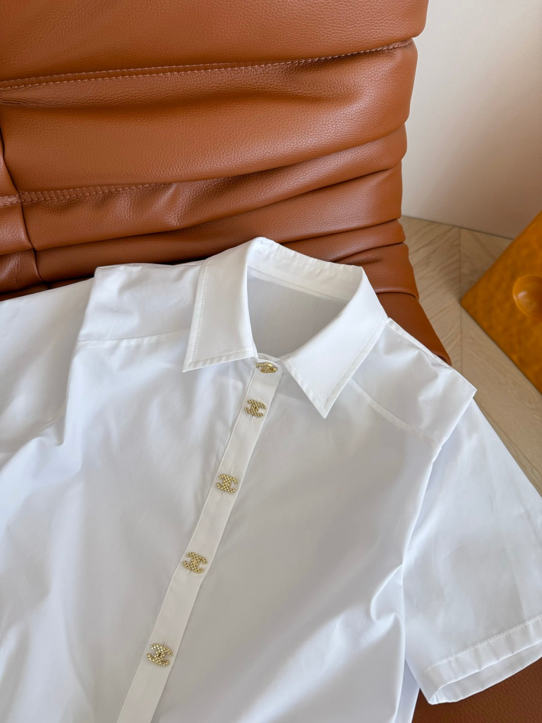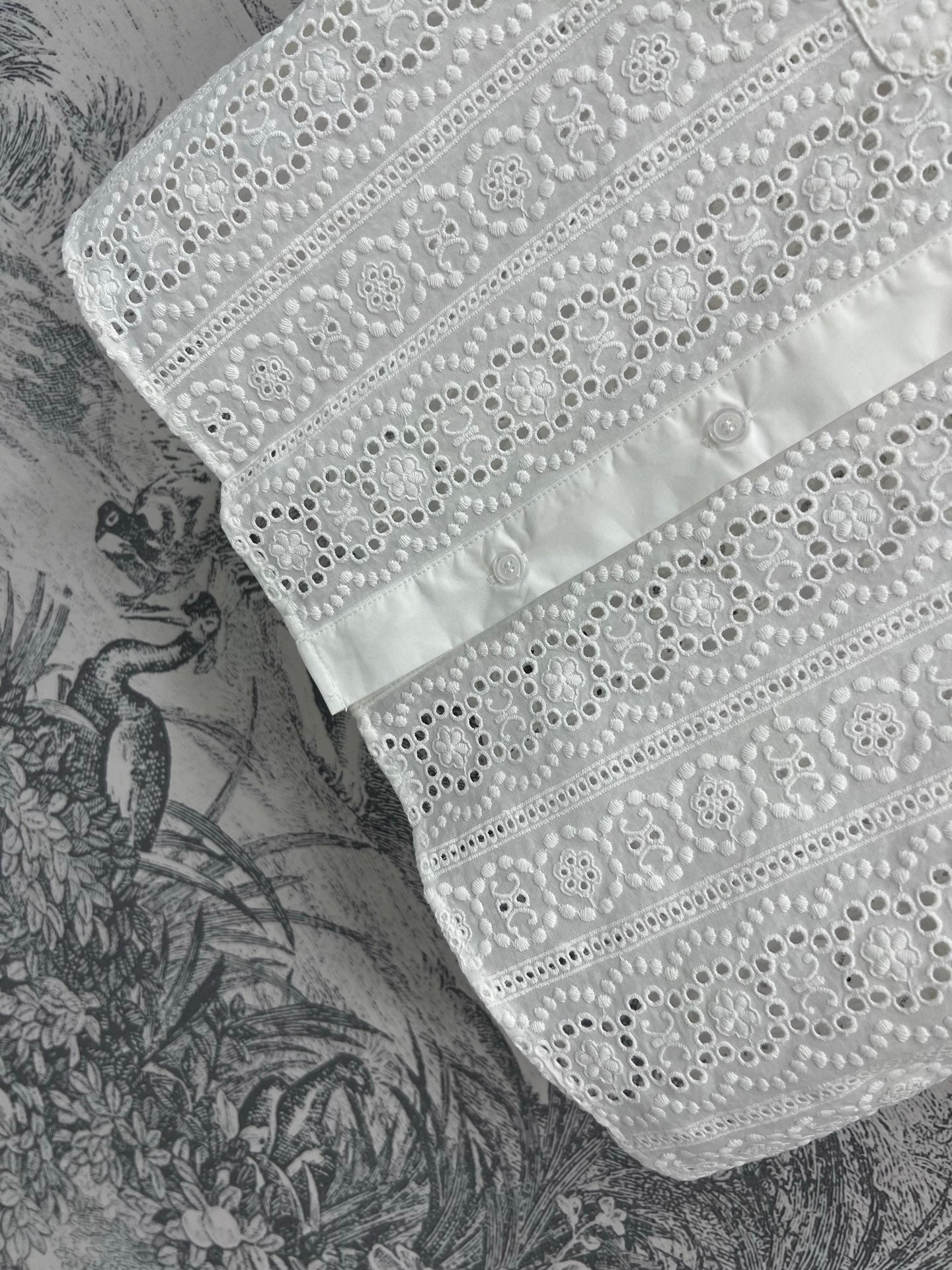 Celine 25 Hollow Shirt Dress with Gold Metal Button White Cotton