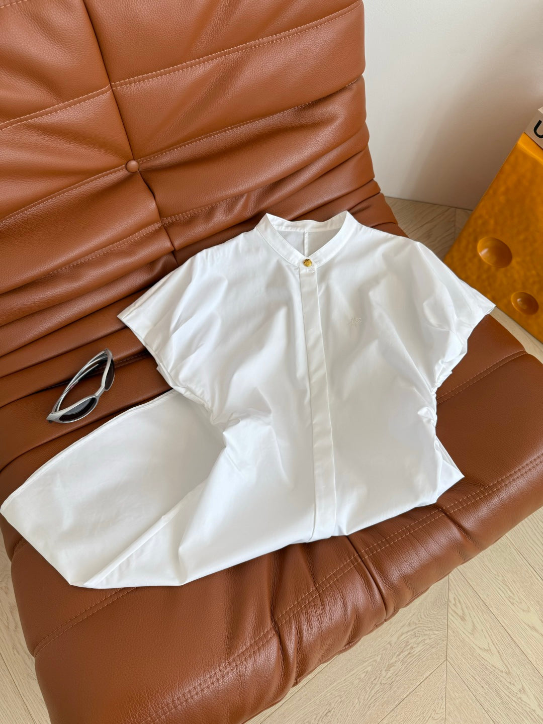 Celine 25 Logo Embroidered Puff Sleeve Shirt Whiet Cotton